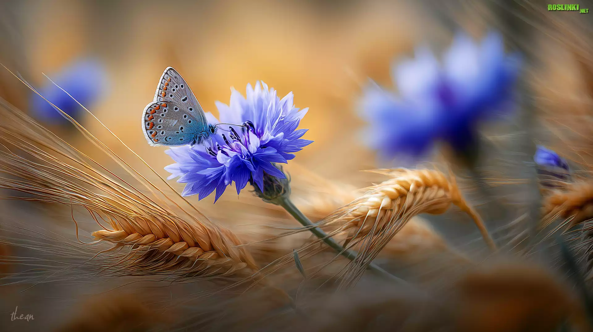 Rośliny: Chabry, Kwiaty, Zboże, Kłosy, Niebieskie, Motyl, Modraszek, Grafika AI