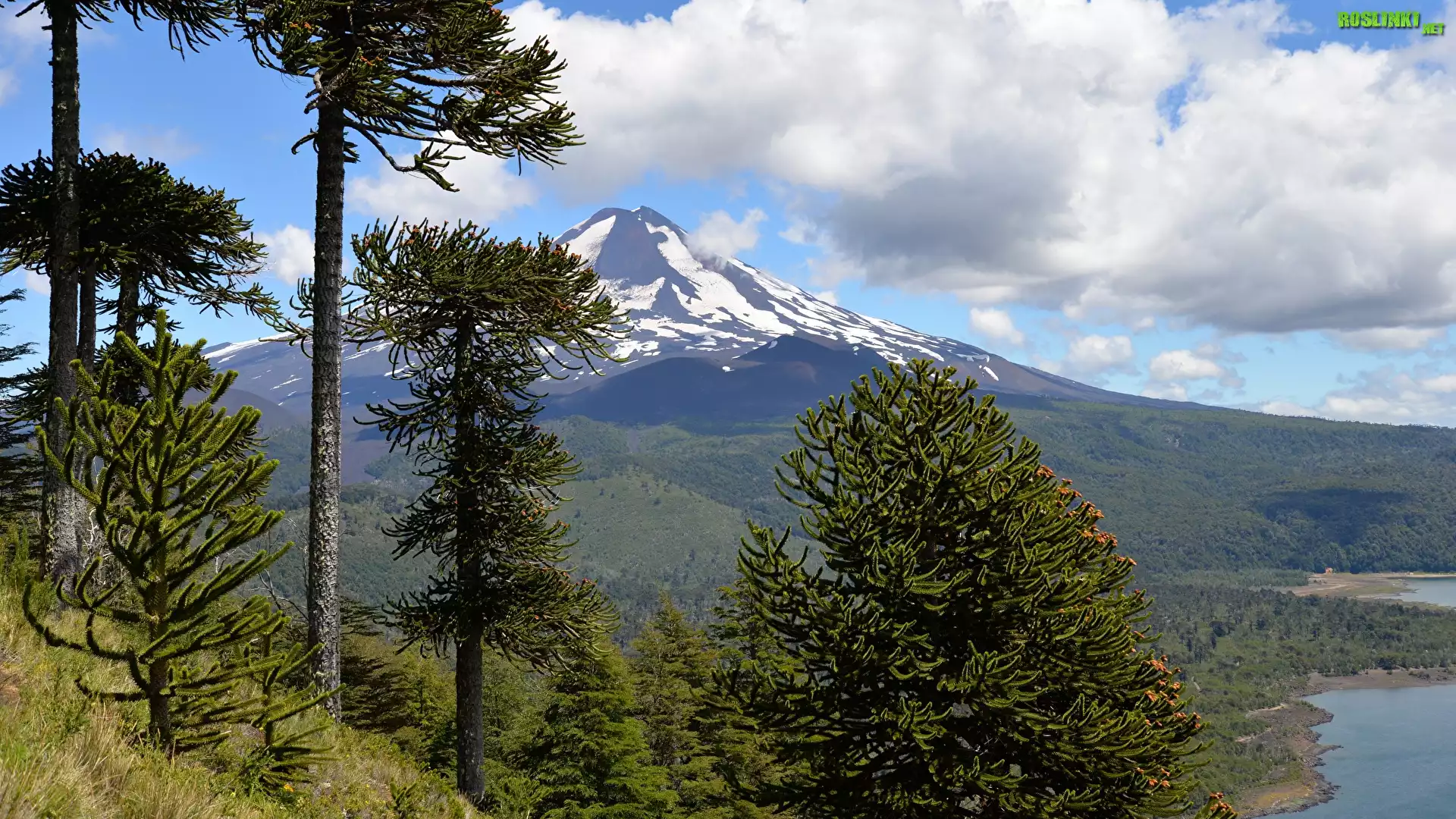 Rośliny: Góra, Wulkan Llaima, Drzewa, Araukarie chilijskie, Park Narodowy Conguillio, Chile