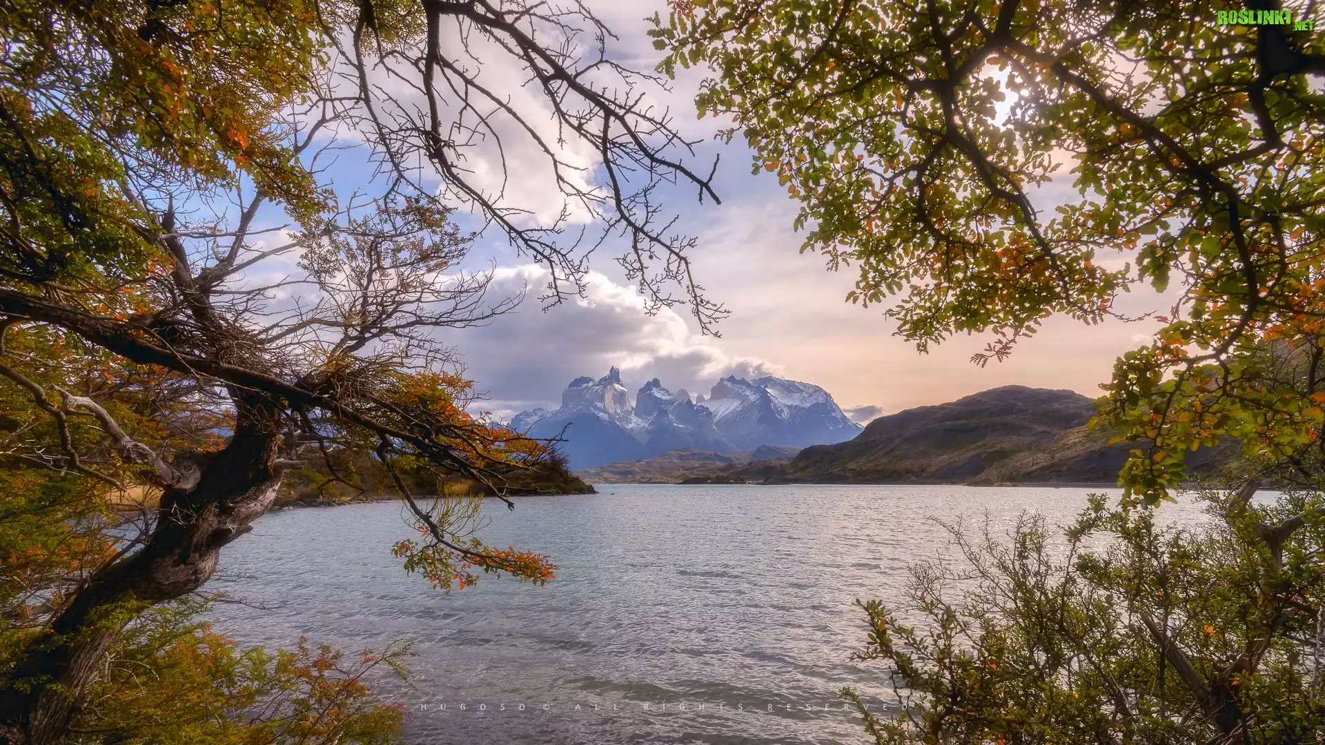 Rośliny: Chile, Patagonia, Park Narodowy Torres del Paine, Góry, Jezioro, Drzewa