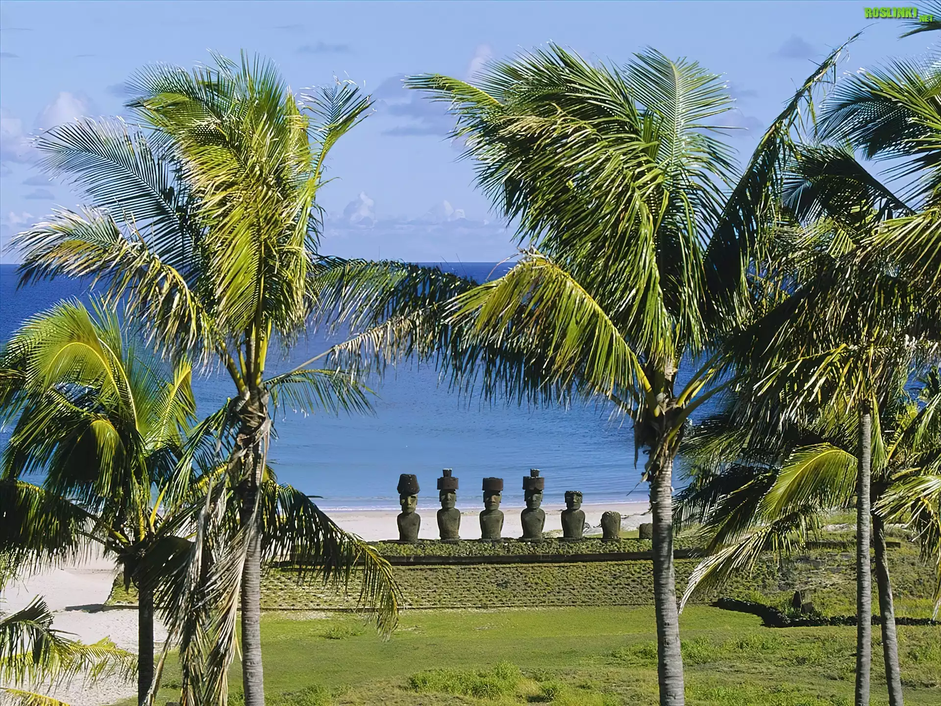 Rośliny: Chile, Wyspa Wielkanocna, Palmy, Trawa, Morze