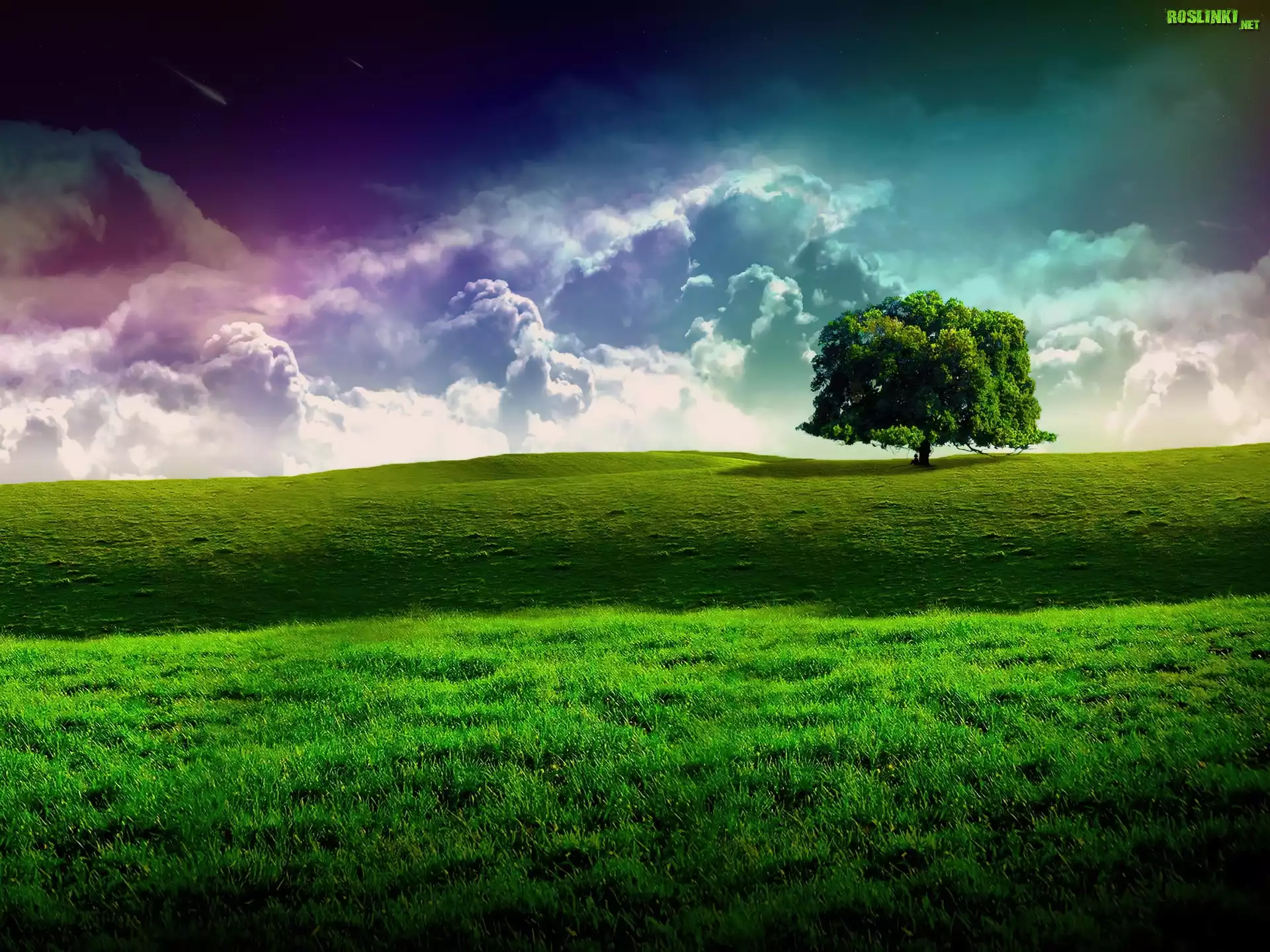 Rośliny: Chmury, Samotne, Drzewo, Łąka, Trawa