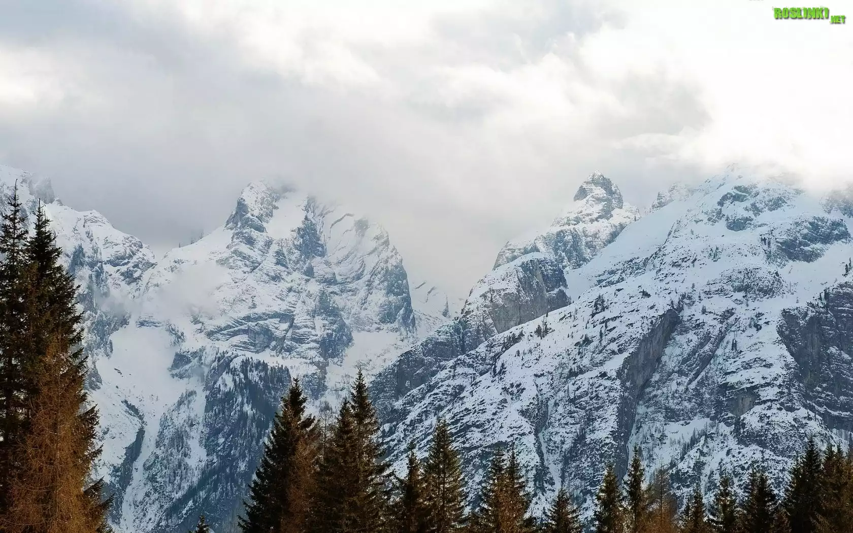 Rośliny: Chmury, Góry, Drzewa, Zima