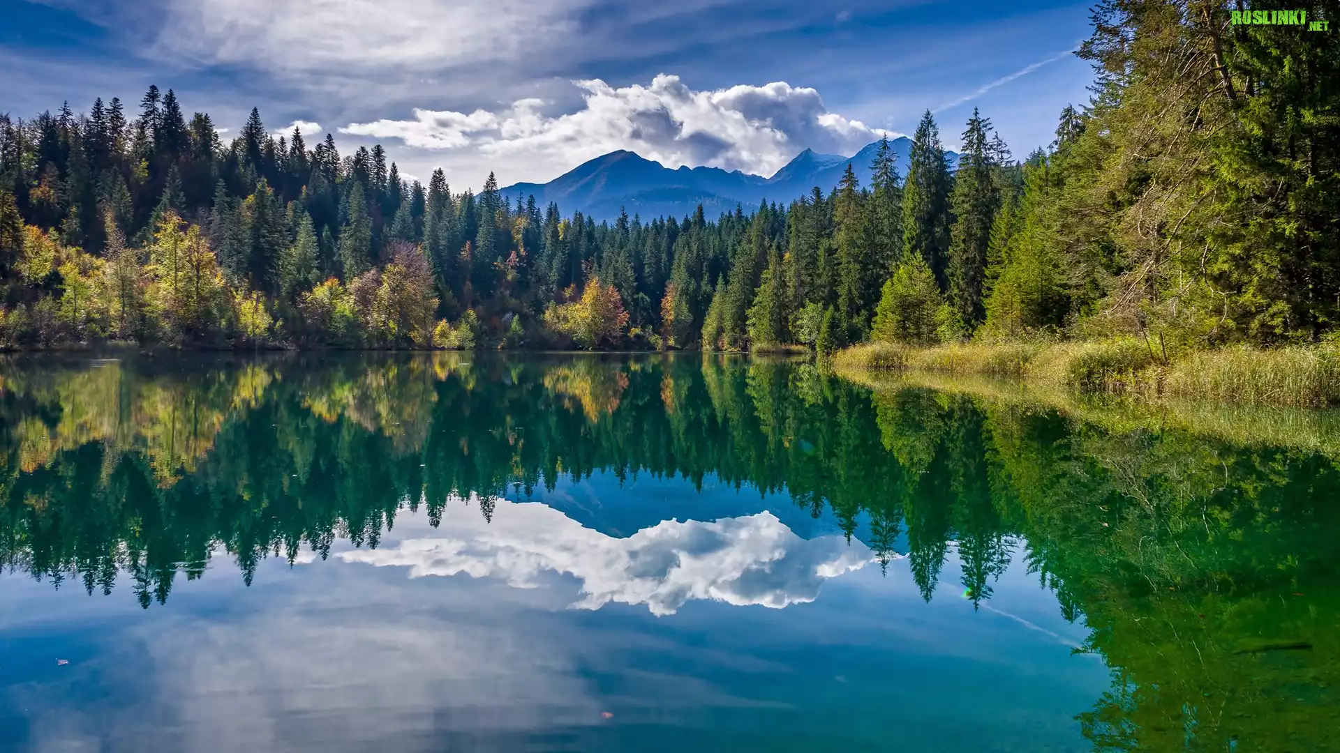 Rośliny: Szwajcaria, Kanton Gryzonia, Góry, Jezioro, Lake Cresta, Drzewa, Chmury