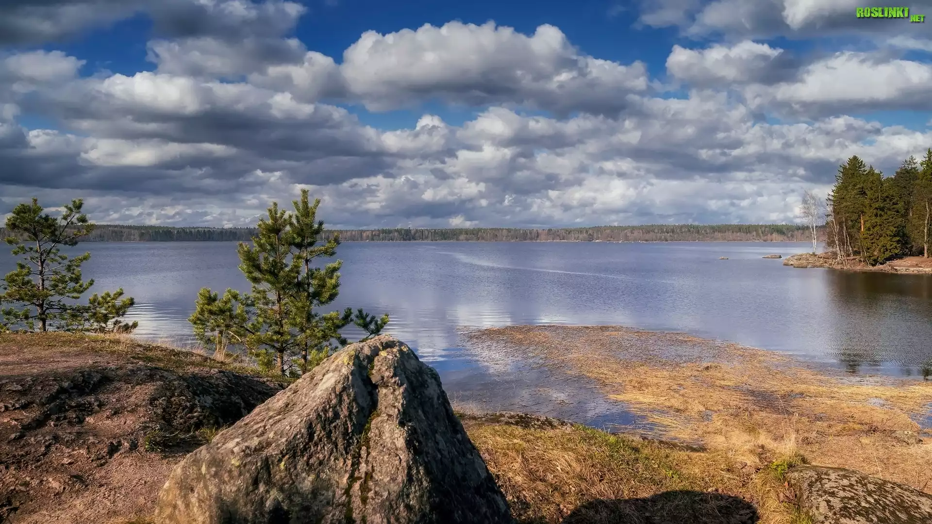 Rośliny: Jezioro, Lato, Drzewa, Chmury