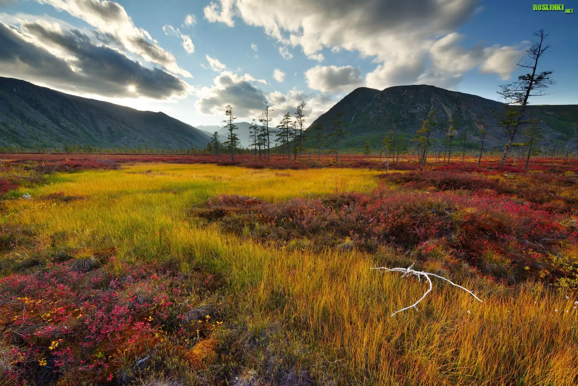 Rośliny: Rosja, Obwód magadański, Kołyma, Góry Kołymskie, Drzewa, Roślinność, Chmury