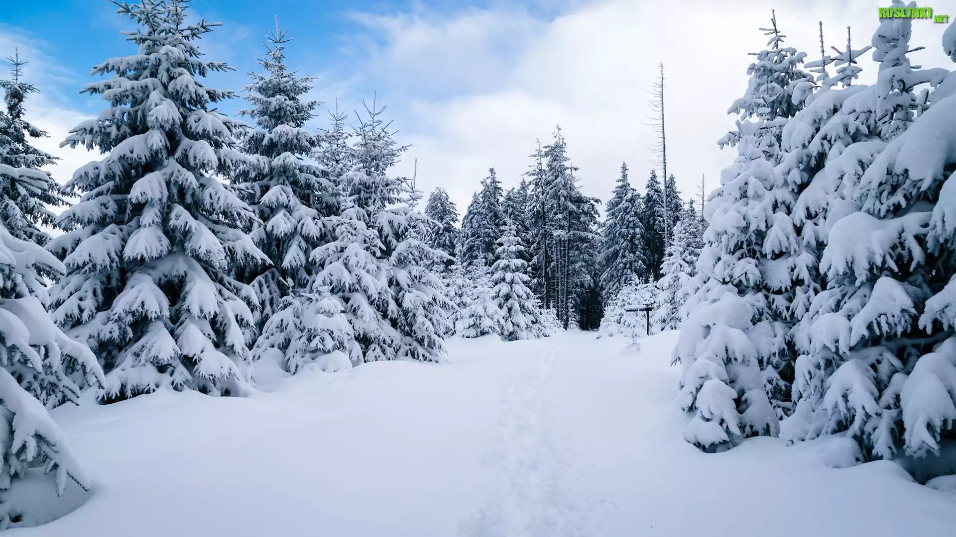 Rośliny: Niemcy, Park Narodowy Harzu, Zima, Las, Ośnieżone, Świerki, Chmury