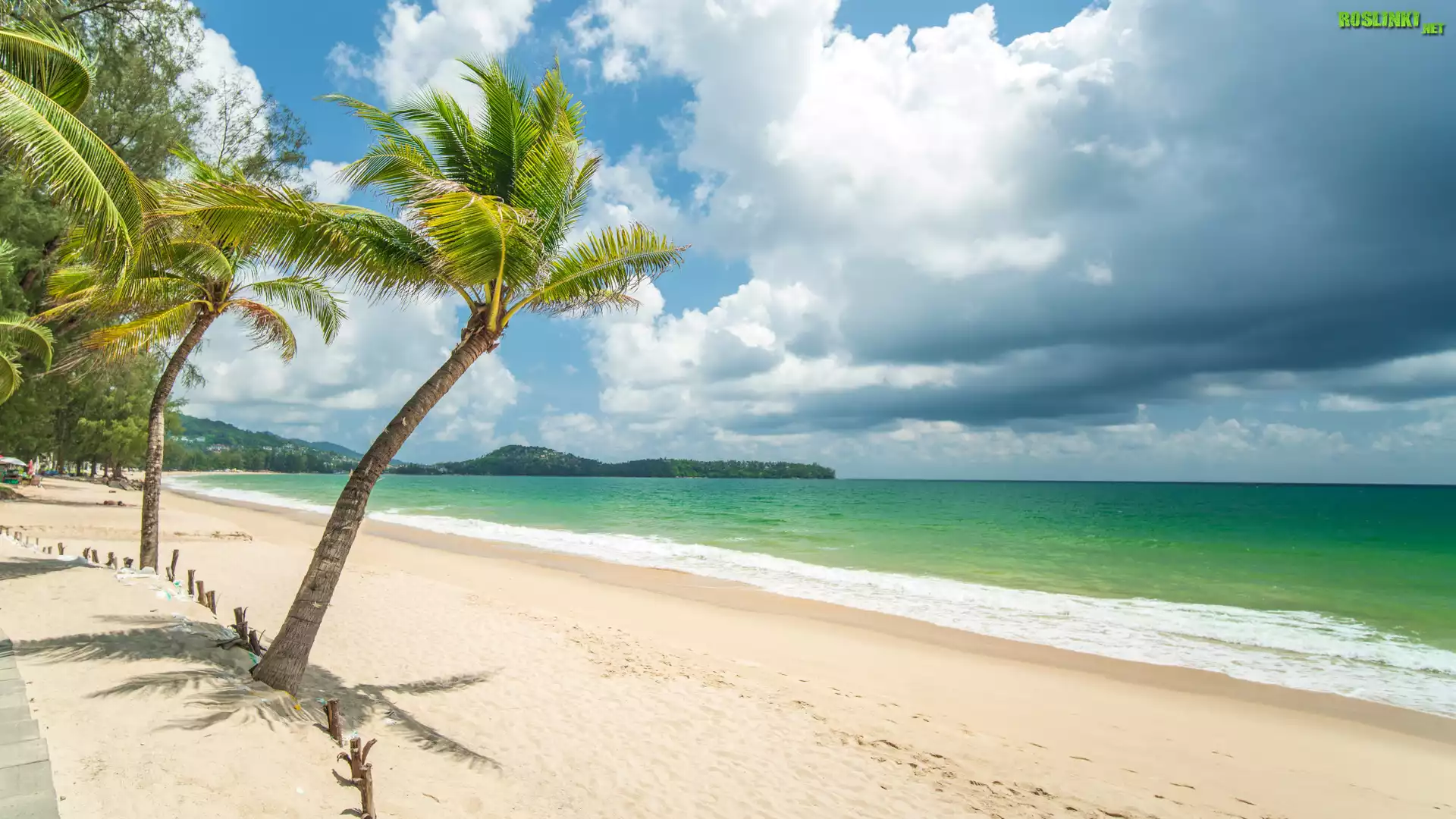 Rośliny: Plaża, Morze, Palmy, Chmury