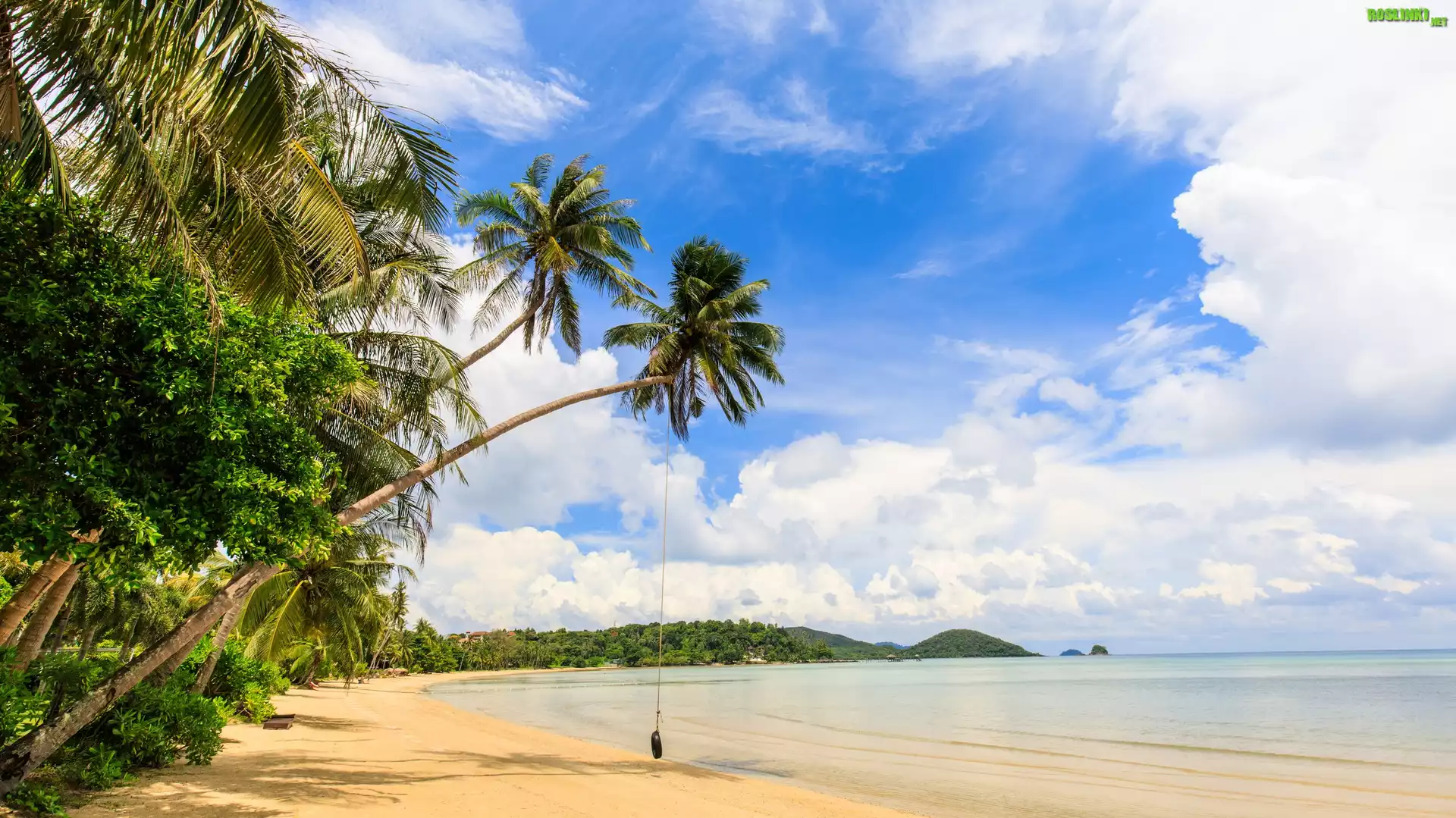 Rośliny: Wyspa Ko Mak, Prowincja Trat, Tajlandia, Morze, Palmy, Plaża, Chmury