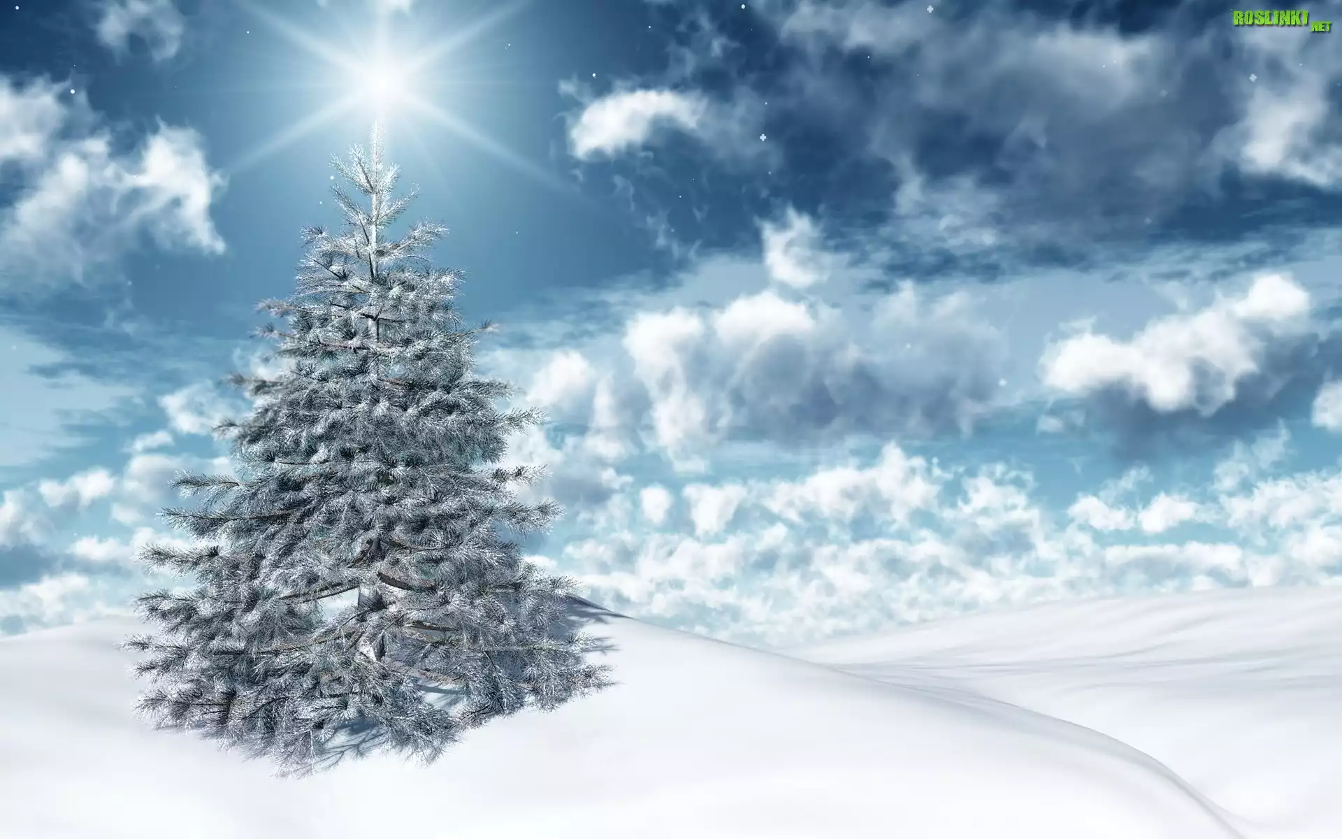 Choinka, Chmury, Åšnieg, Zima