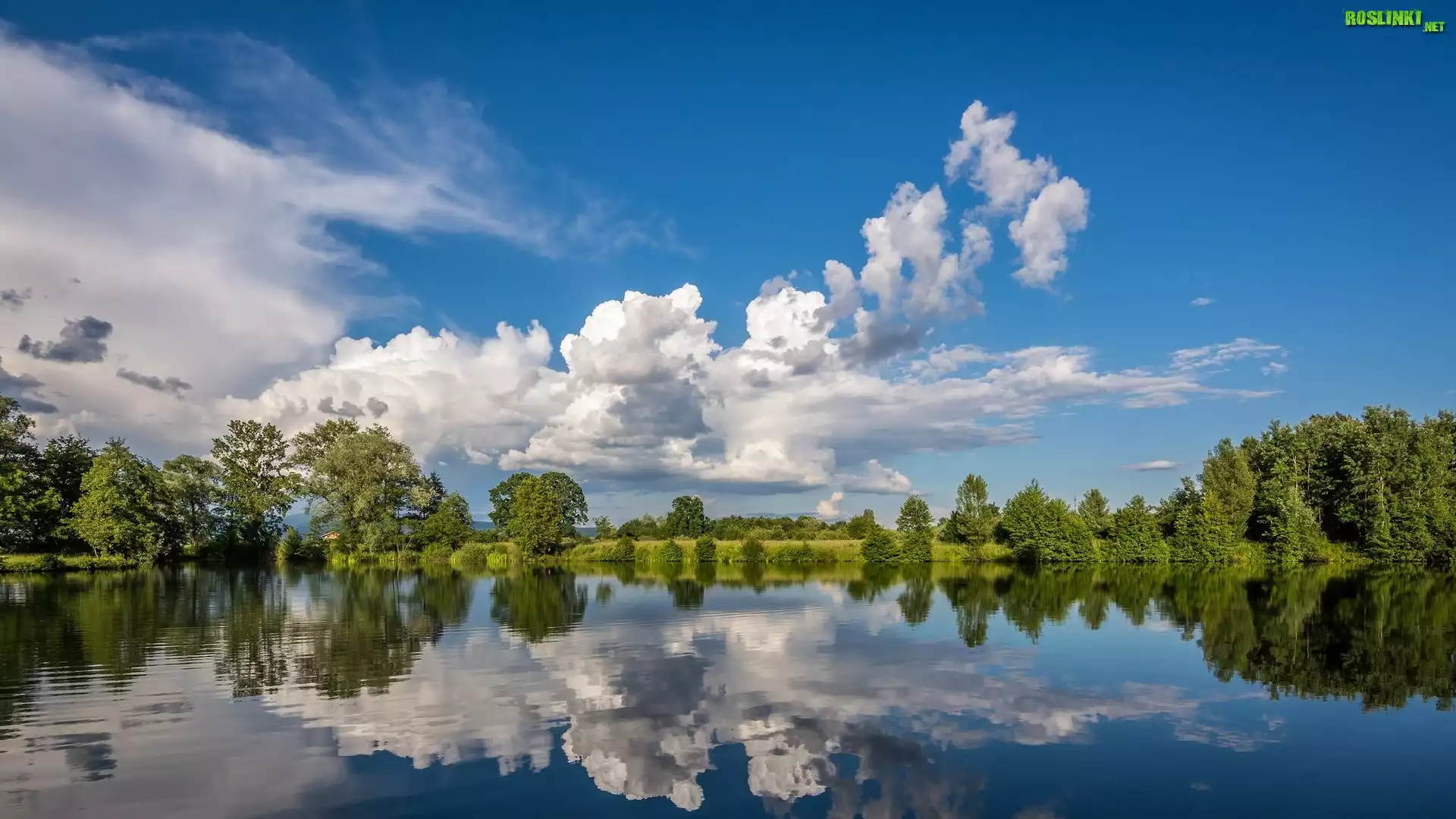 Chorwacja, Jezioro Bobovica, Chmury, Drzewa, Odbicie