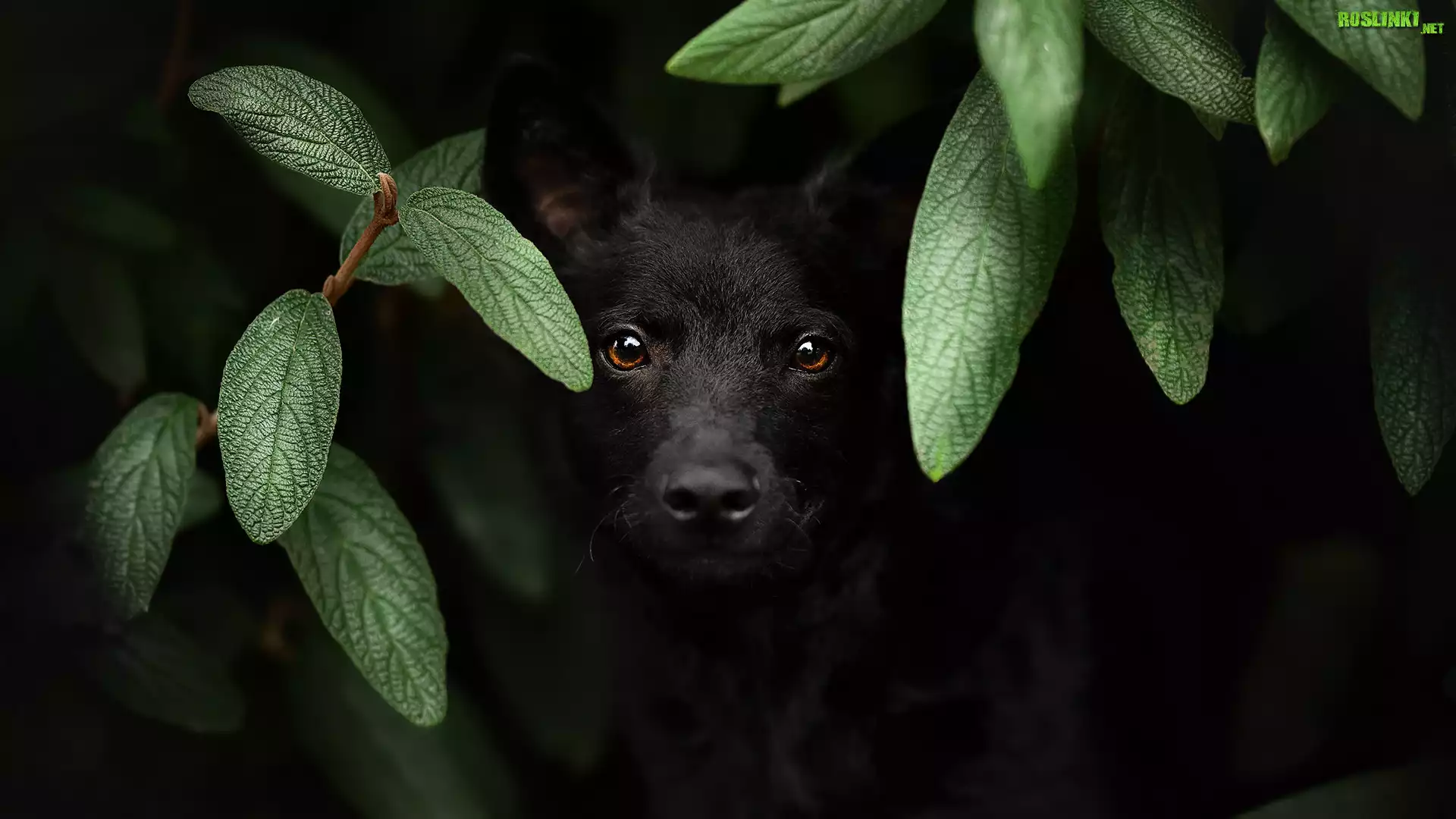 Rośliny: Czarny, Pies, Kundel, Zielone, Liście