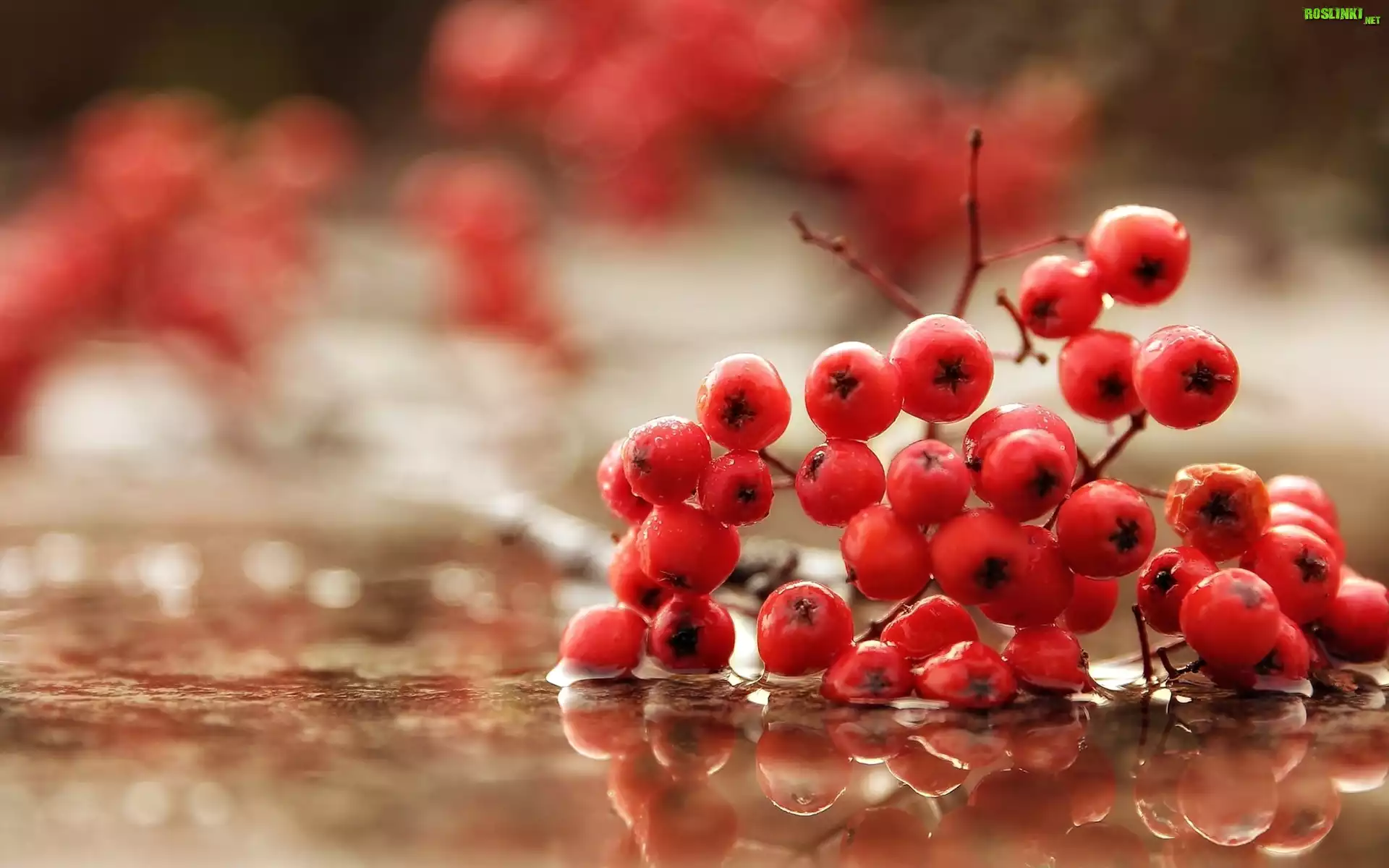 Rośliny: Czerwona, Jarzębina, Gałązka, Makro, Odbicie