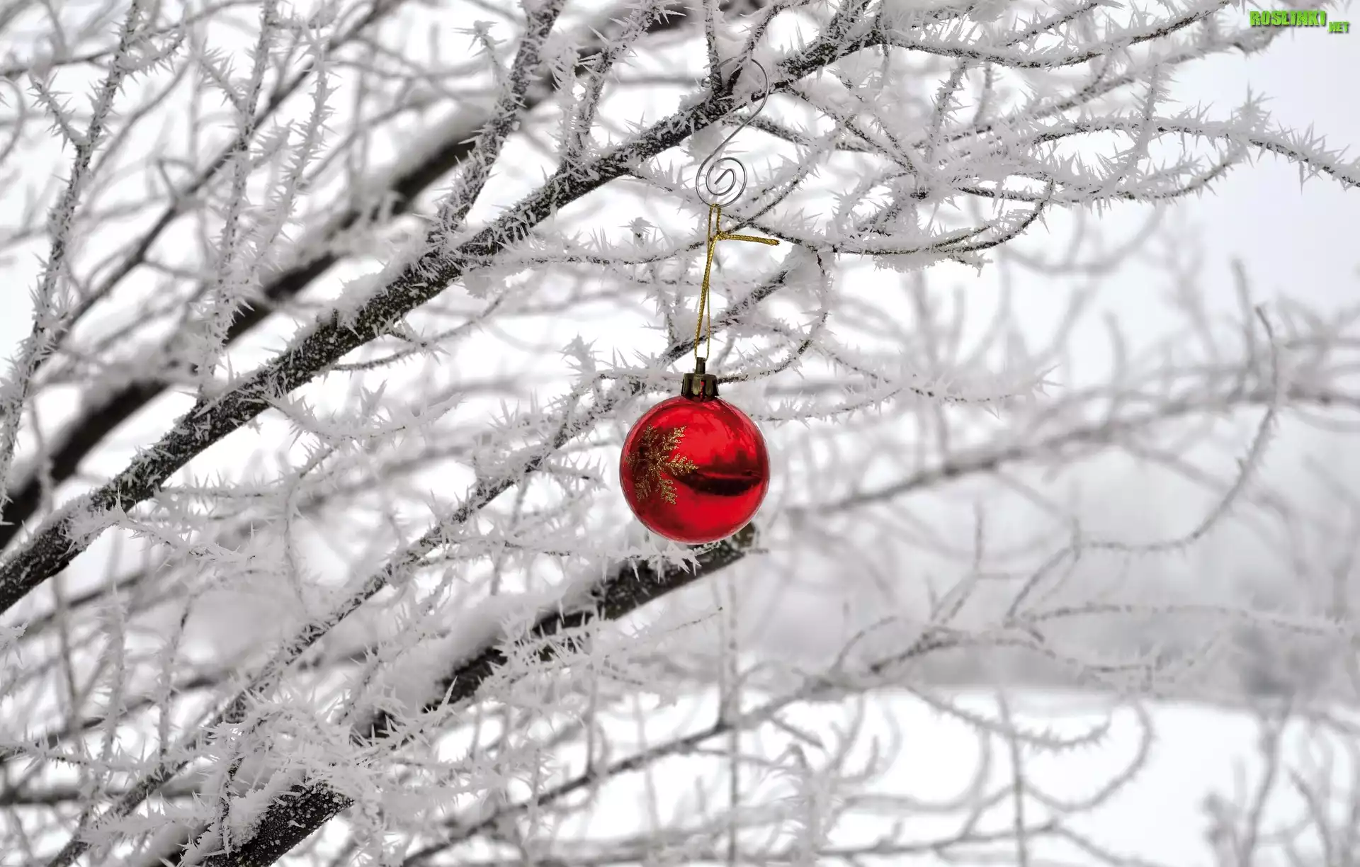 Rośliny: Drzewo, Oszronione, Śnieg, Czerwona, Bombka, Boże Narodzenie