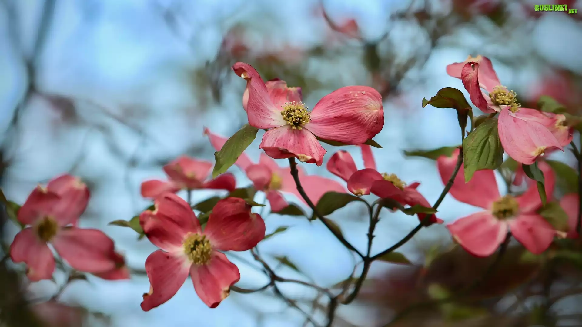 Czerwone, Kwiaty, Gałązki, Krzew, Dereń