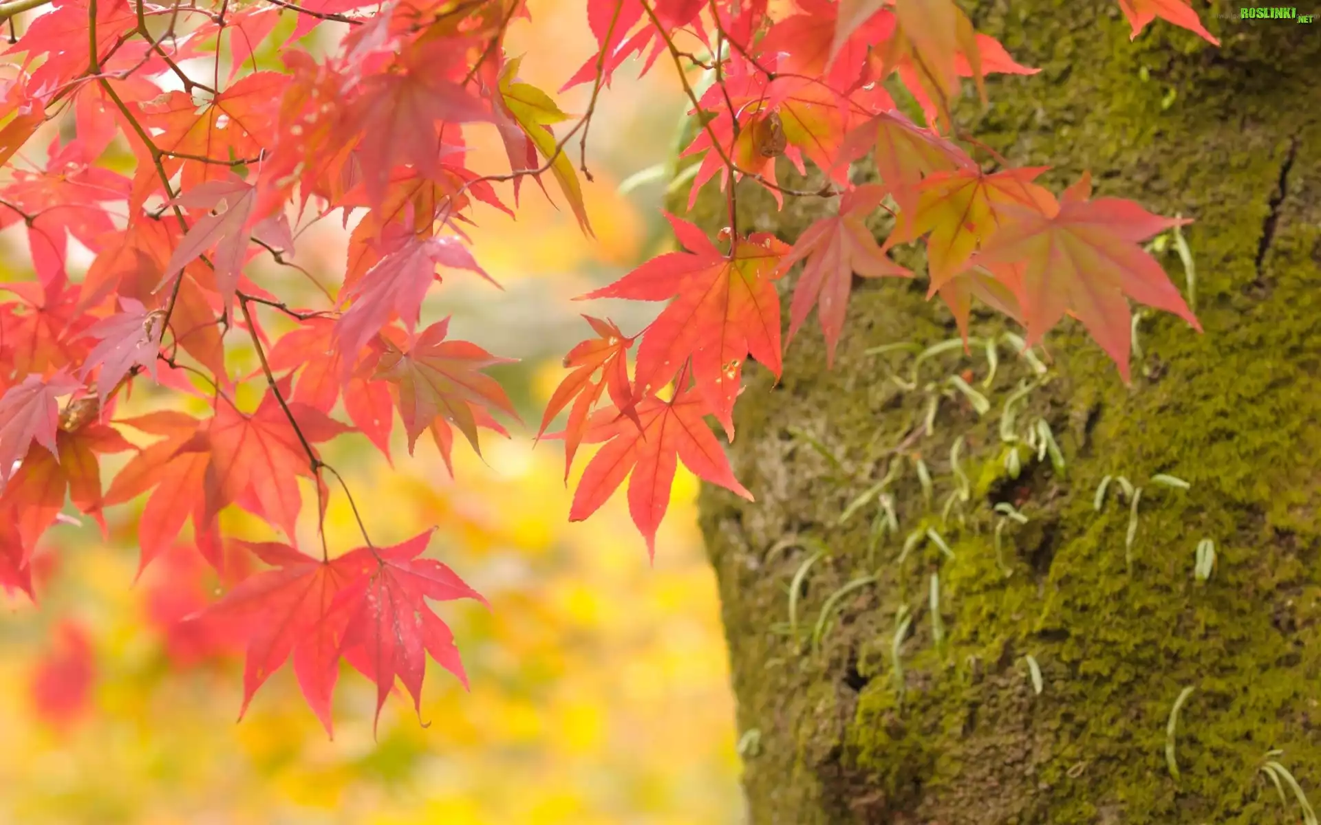 Rośliny: Czerwone, Listki, Pień, Drzewa
