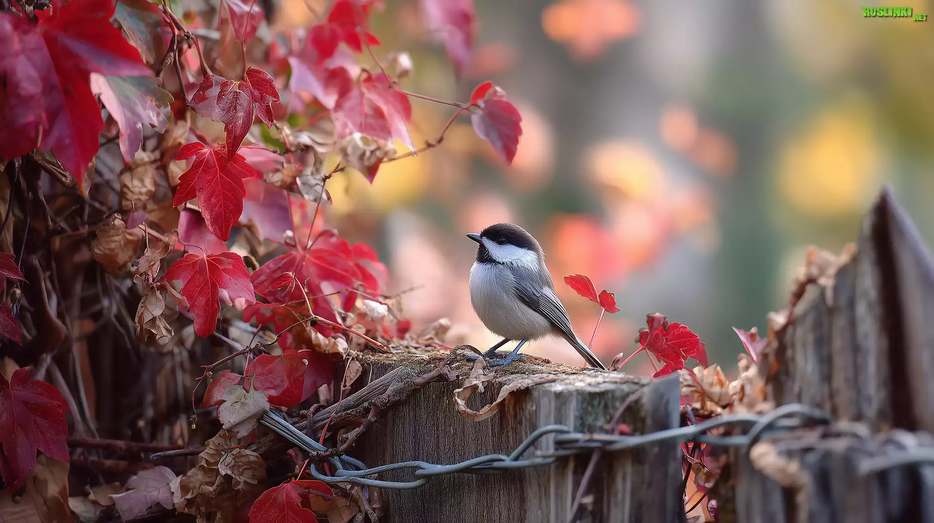 Rośliny: Sikorka, Sosnówka, Płot, Czerwone, Liście, Grafika AI