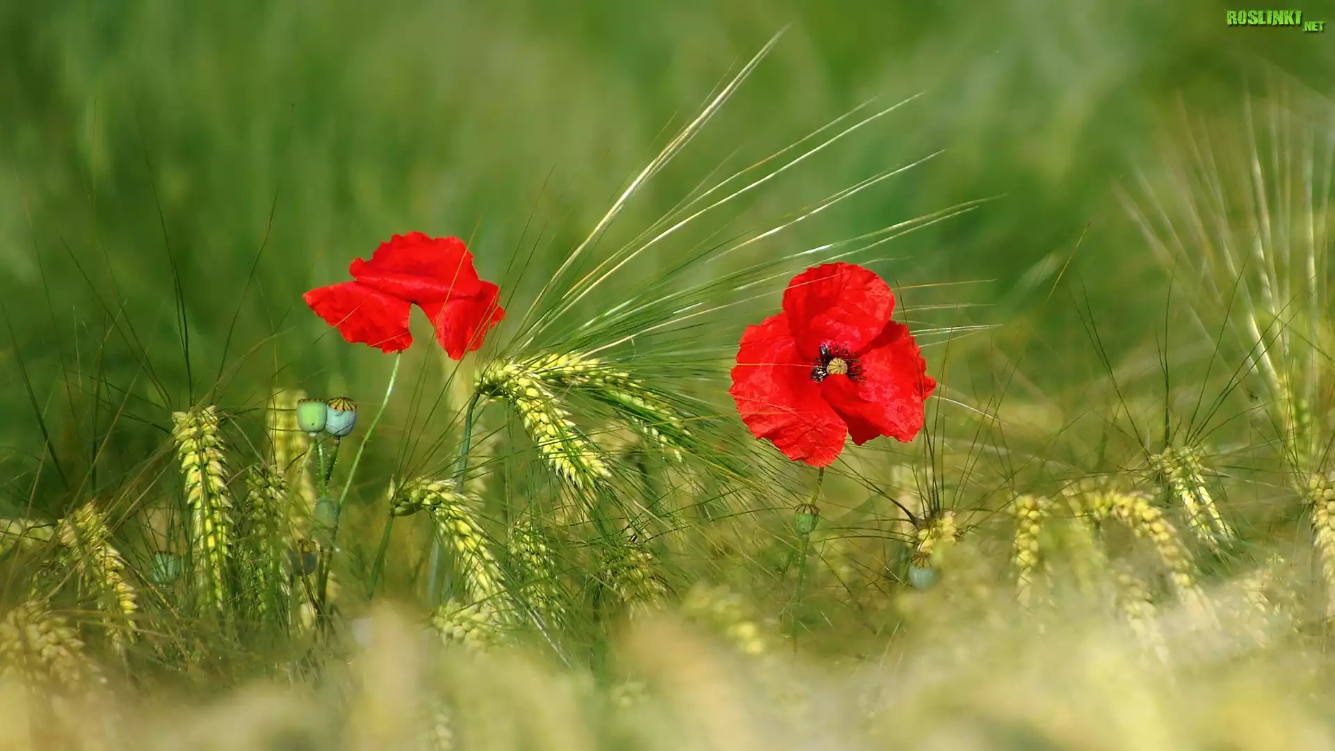 Rośliny: Czerwone, Maki, Kłosy, Zboże, Jęczmień