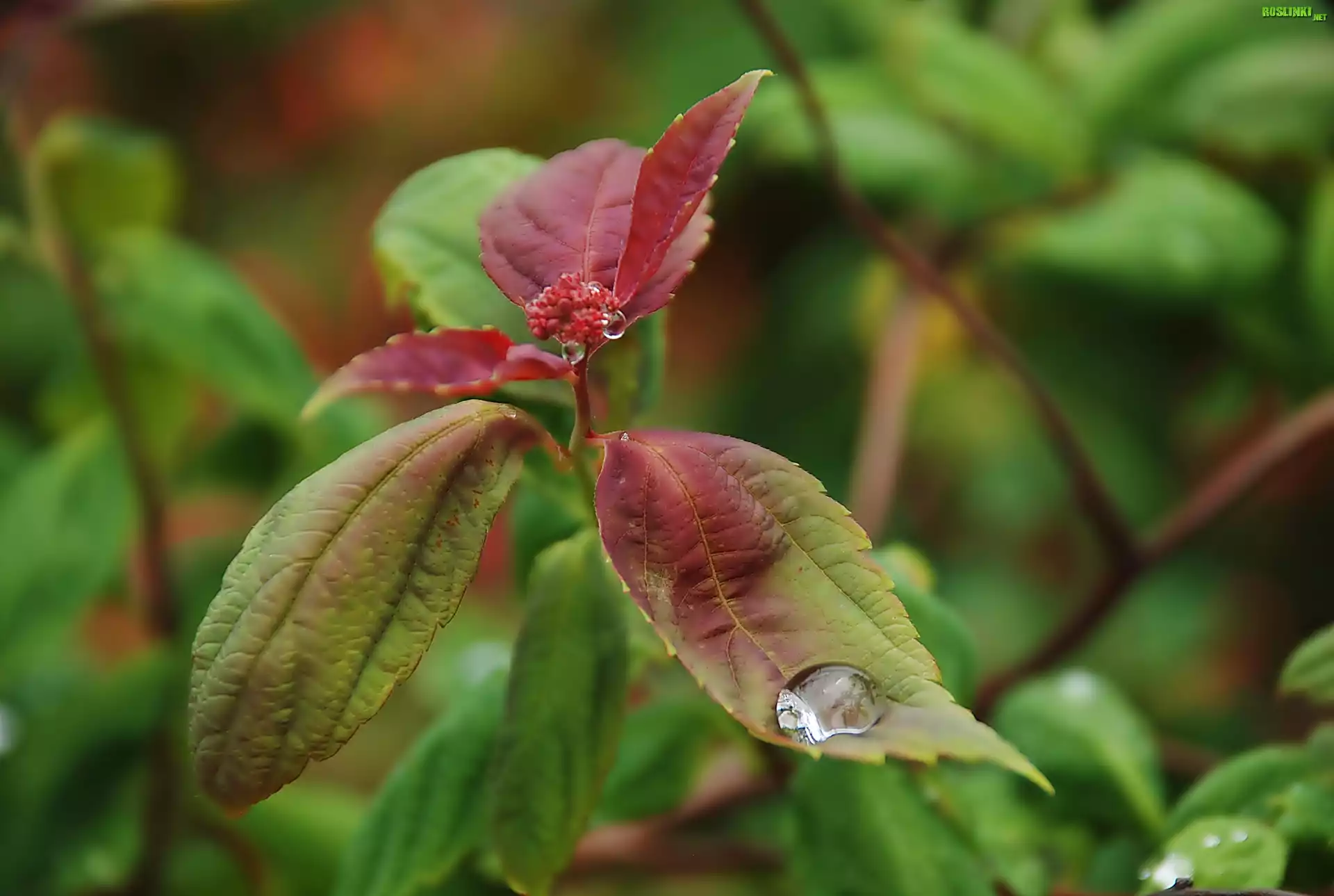 Rośliny: Czerwono, Zielone, Liście, Krople, Deszczu, Makro