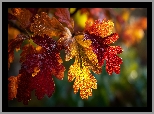 Liście, Jesienne, Dębowe, Dąb, Krople, Grafika AI