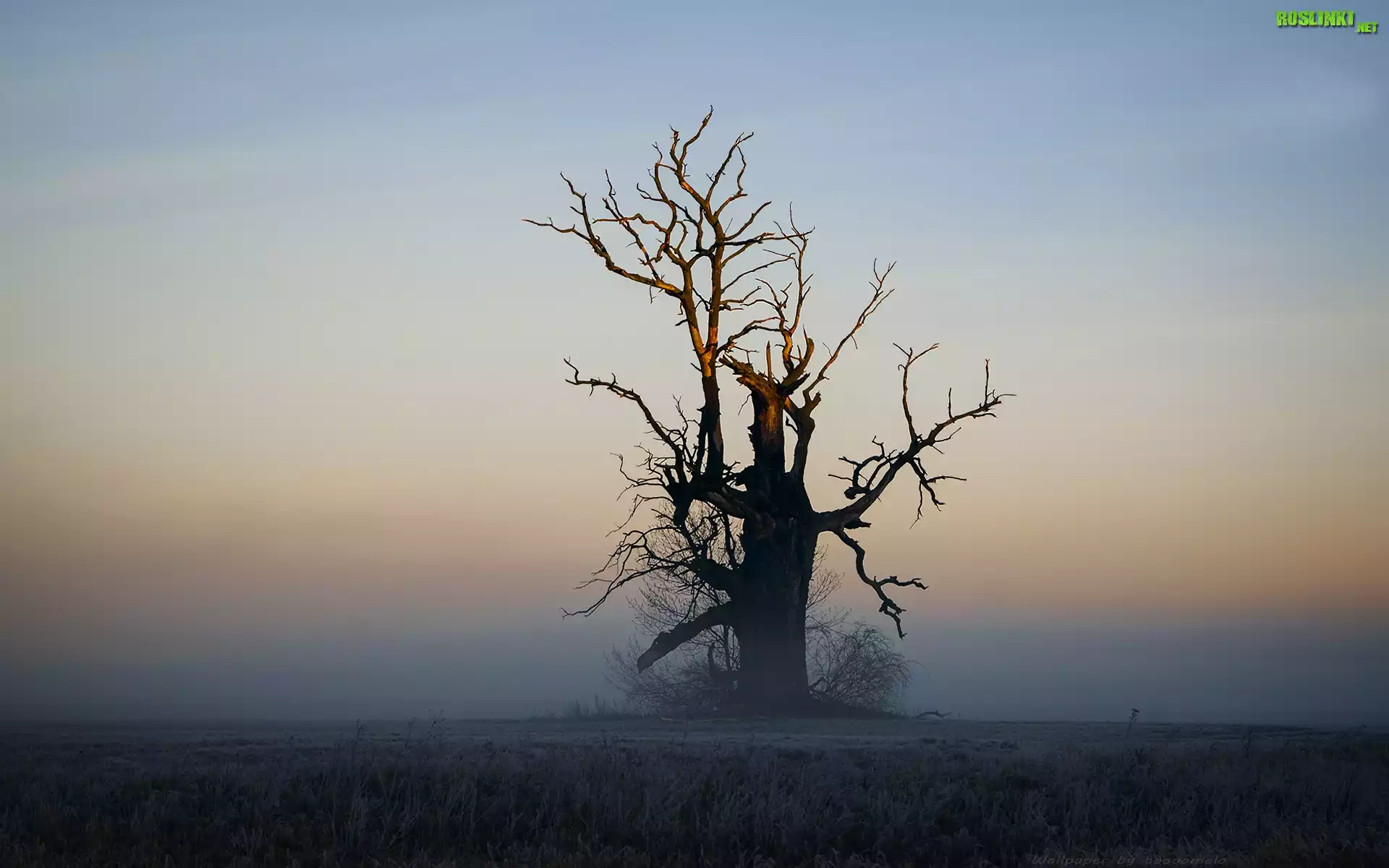 Rośliny: Stary dąb w Rogalinie o poranku.