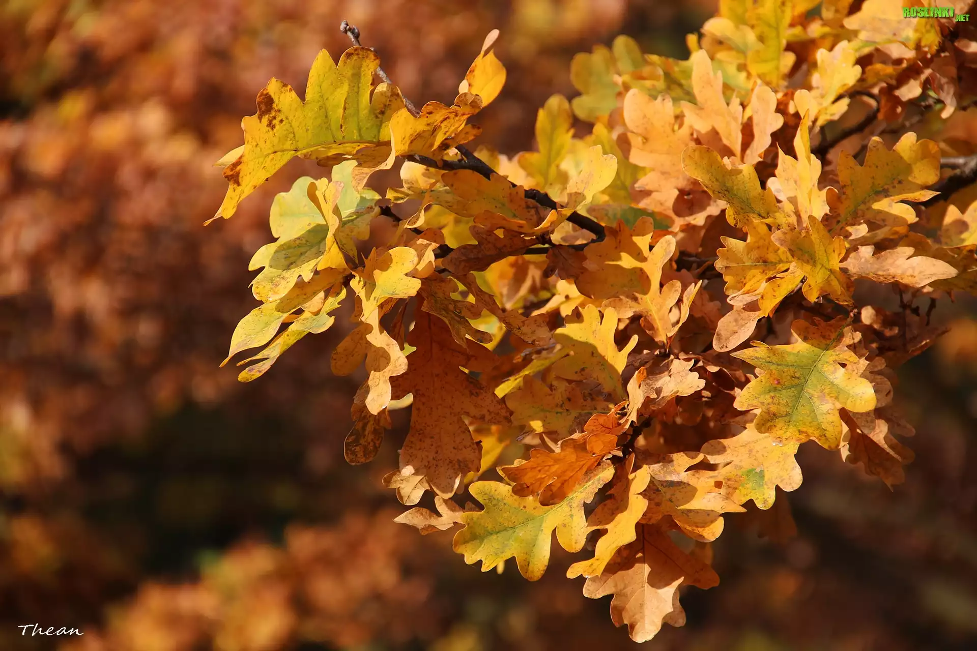 Rośliny: Żółto, Brązowe, Liście, Dębu, Jesień