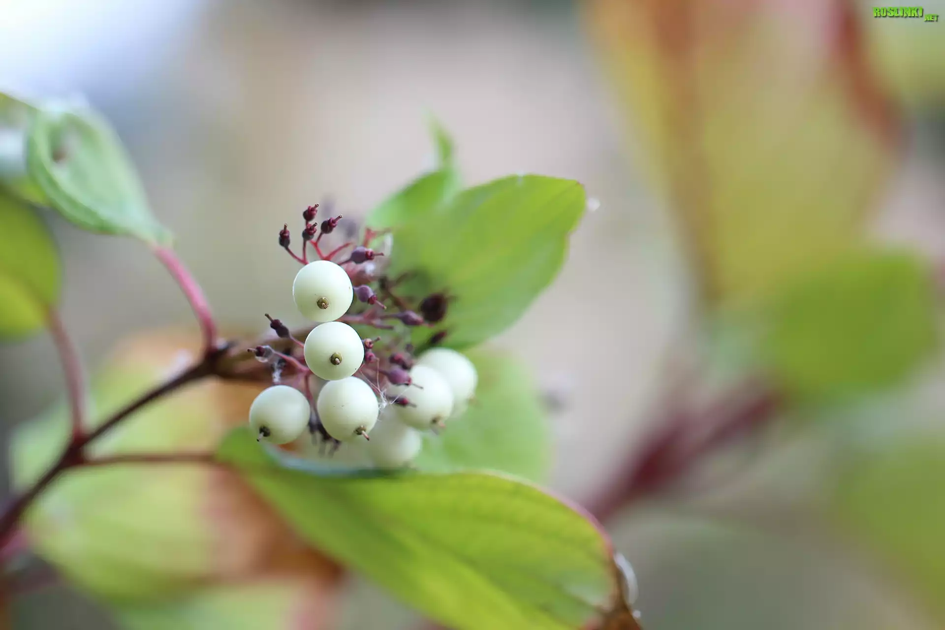 Rośliny: Dereń biały, Krzew, Białe, Owoce
