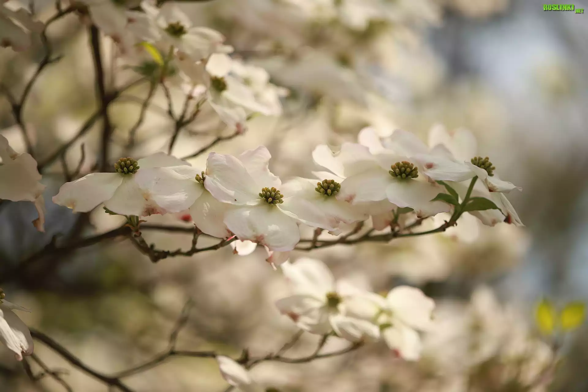 Rośliny: Dereń kwiecisty, Białe, Kwiaty