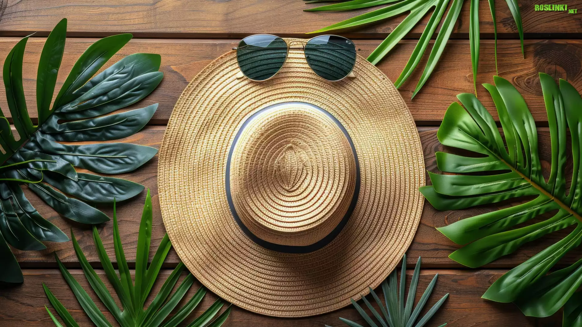 Rośliny: Kapelusz, Okulary, Liście, Deski, Drewno, Kompozycja