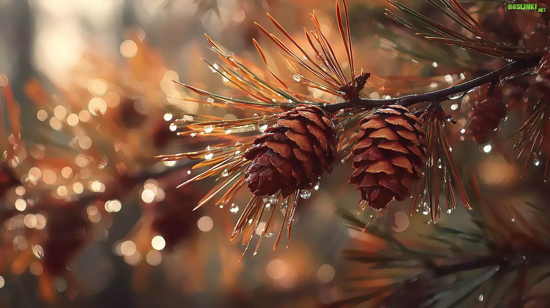 Rośliny: Szyszki, Sosna, Krople, Deszczu, Bokeh, Grafika AI