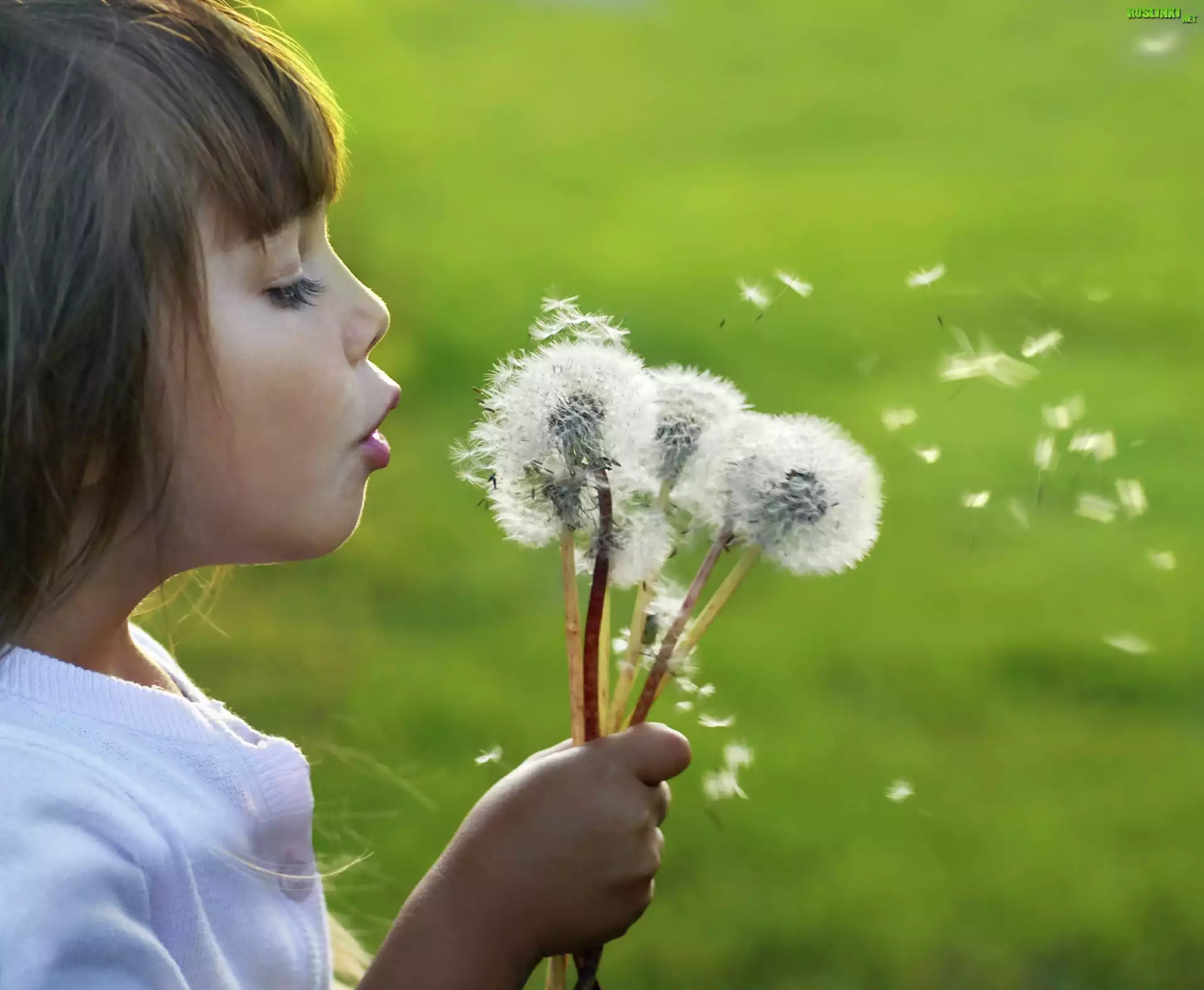 Rośliny: Dziewczynka, Dmuchawce, Rozmycie