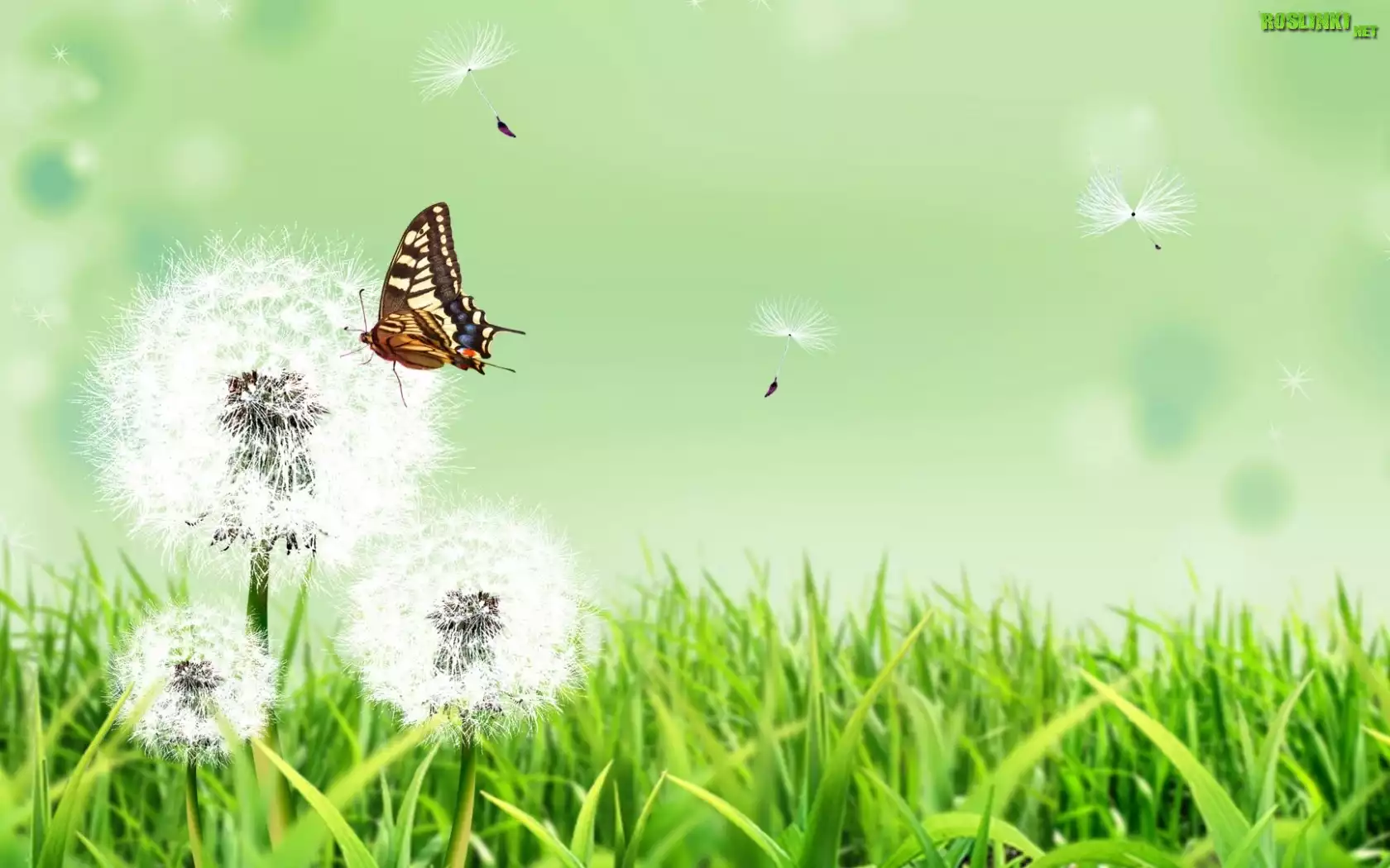 Rośliny: Dmuchawce, Motyl, Grafika 2D
