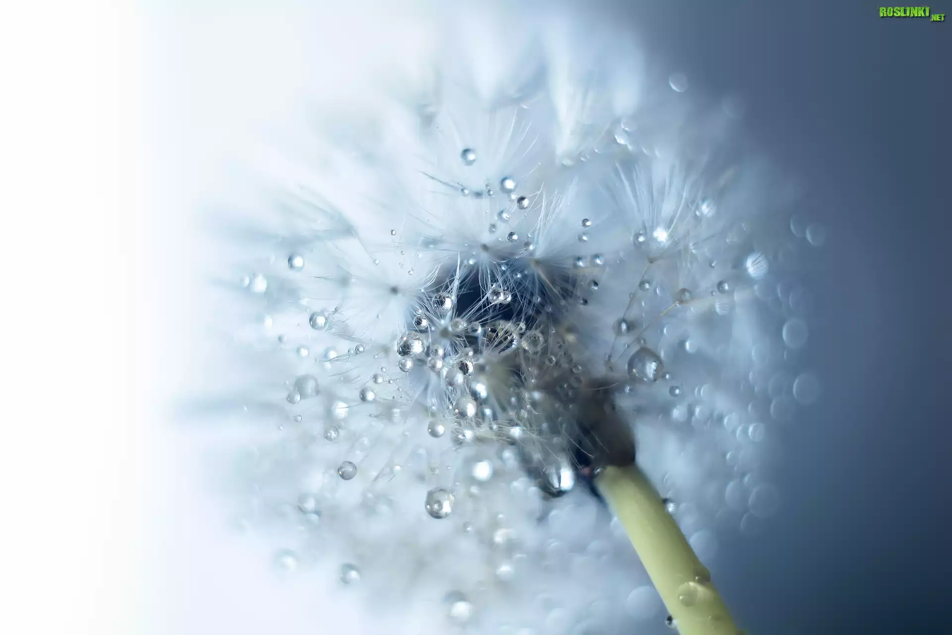 Rośliny: Dmuchawiec, Mniszek, Krople, Rozmyte tło