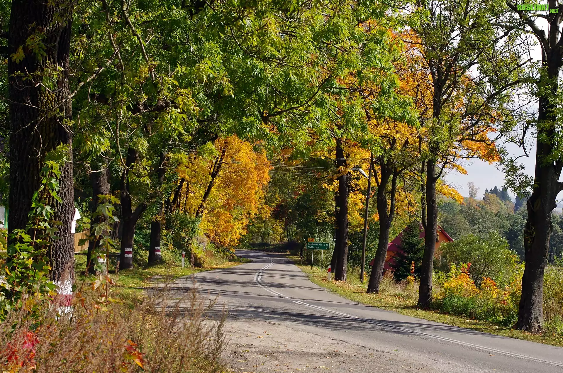 Rośliny: Dolny, Śląsk, Dom, Droga, Drzewa, Jesień