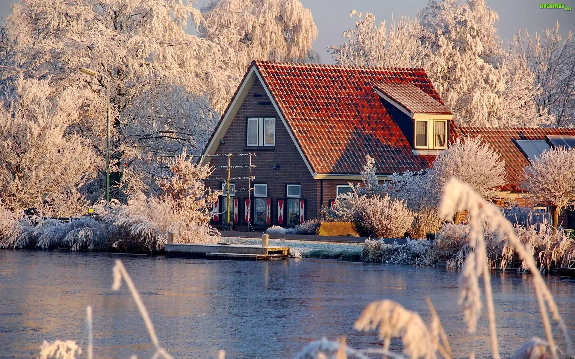 Rośliny: Dom, Nad, Jeziorem, Drzewa