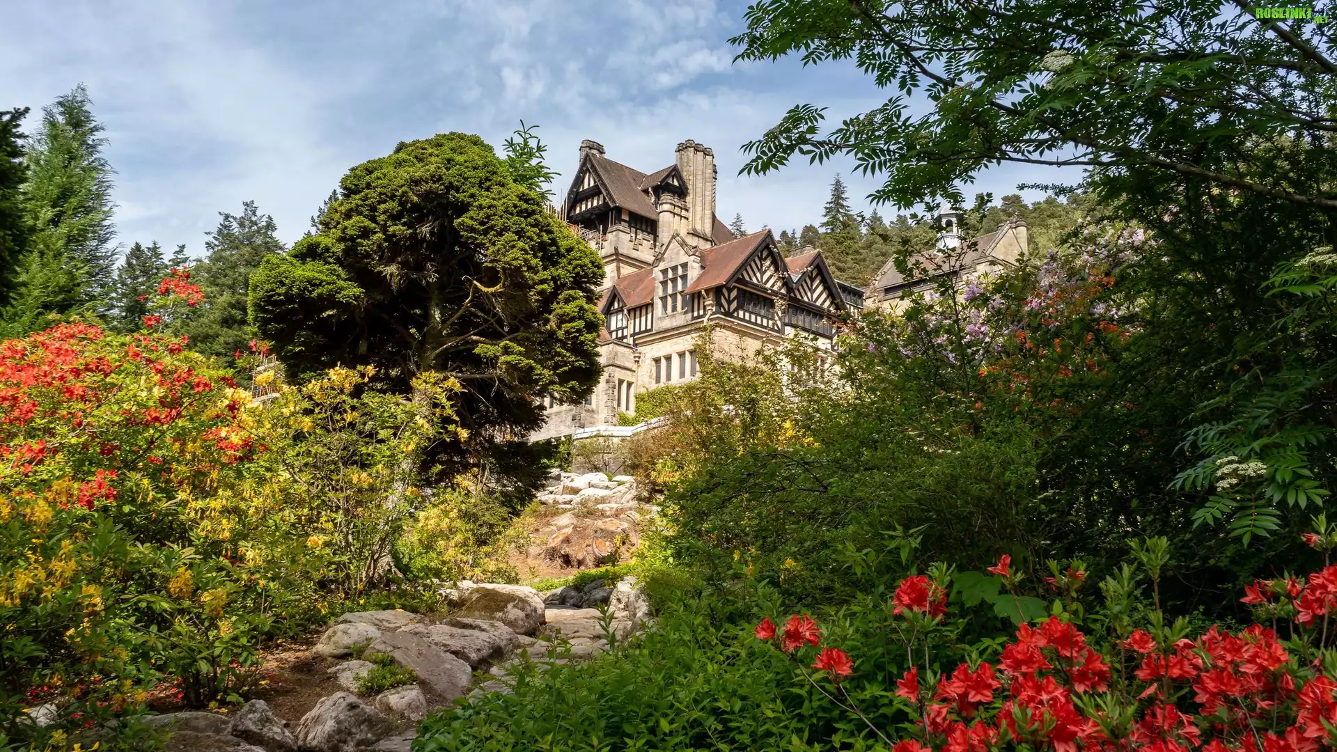 Rośliny: Dom, Drzewa, Ogród, Kamienie