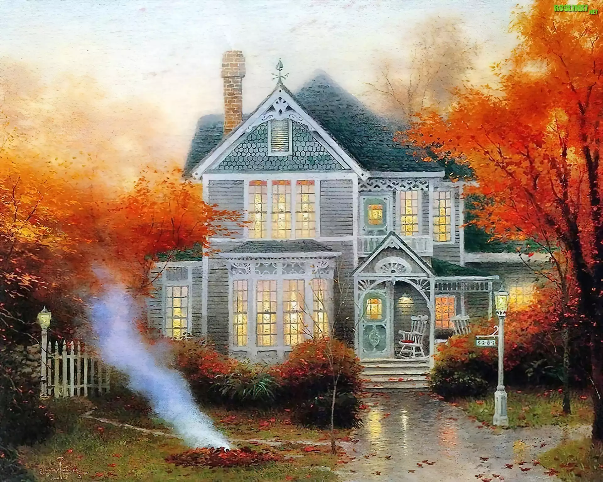 Rośliny: Dom, Jesień, Thomas Kinkade