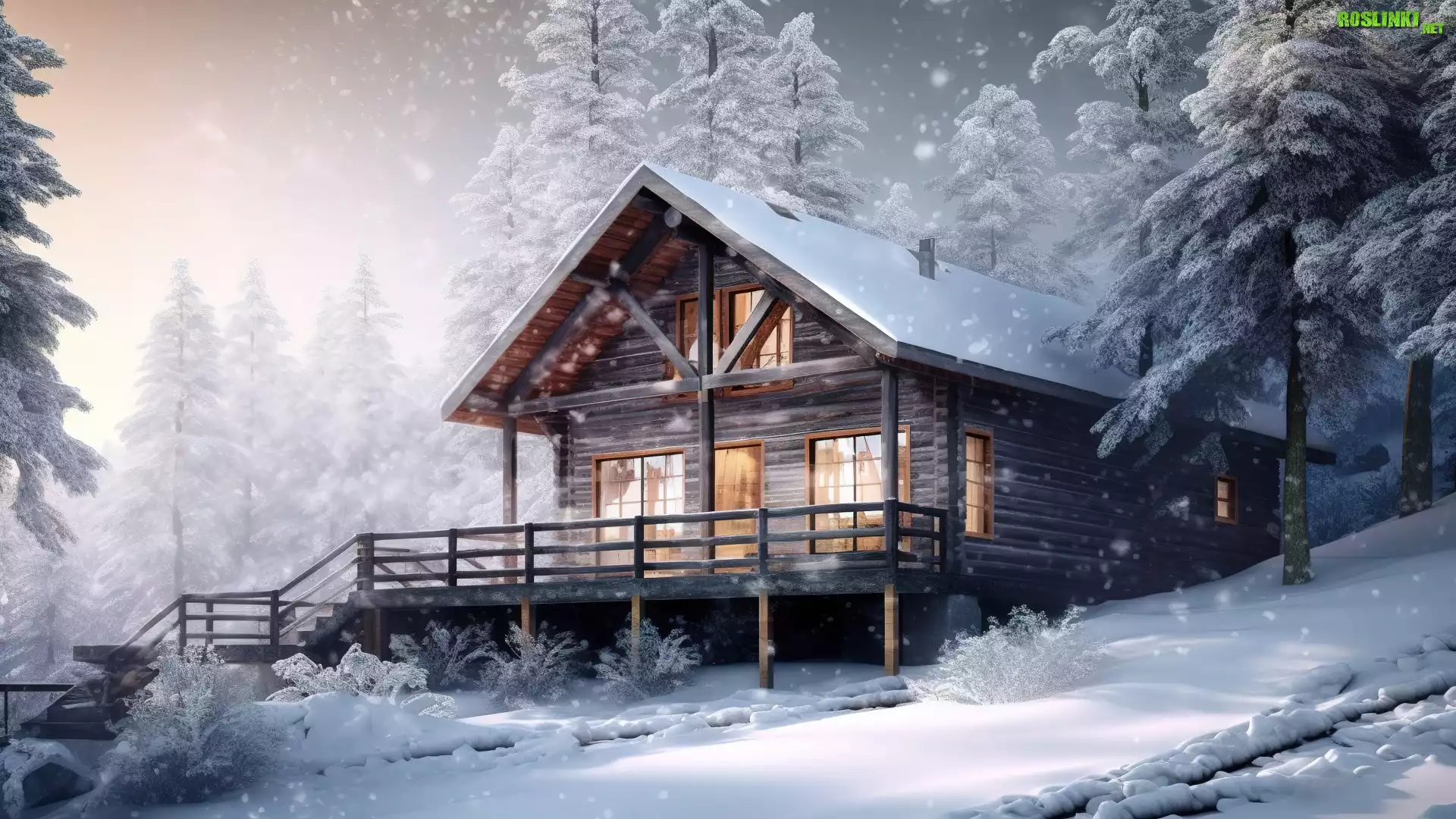 Rośliny: Zima, Śnieg, Wzgórze, Dom, Światła, Ośnieżone, Drzewa