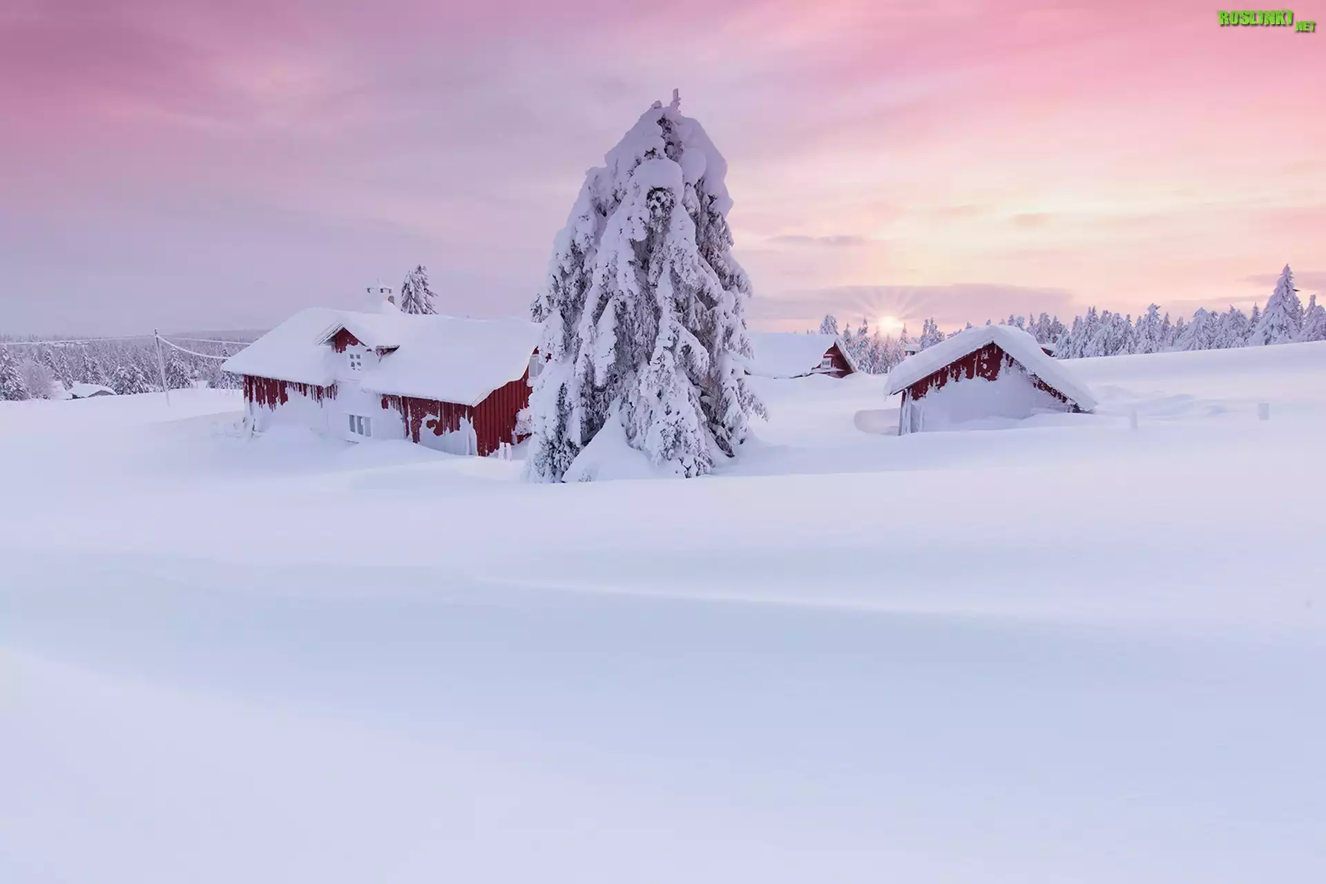 Rośliny: Śnieg, Zima, Dom, Drzewa