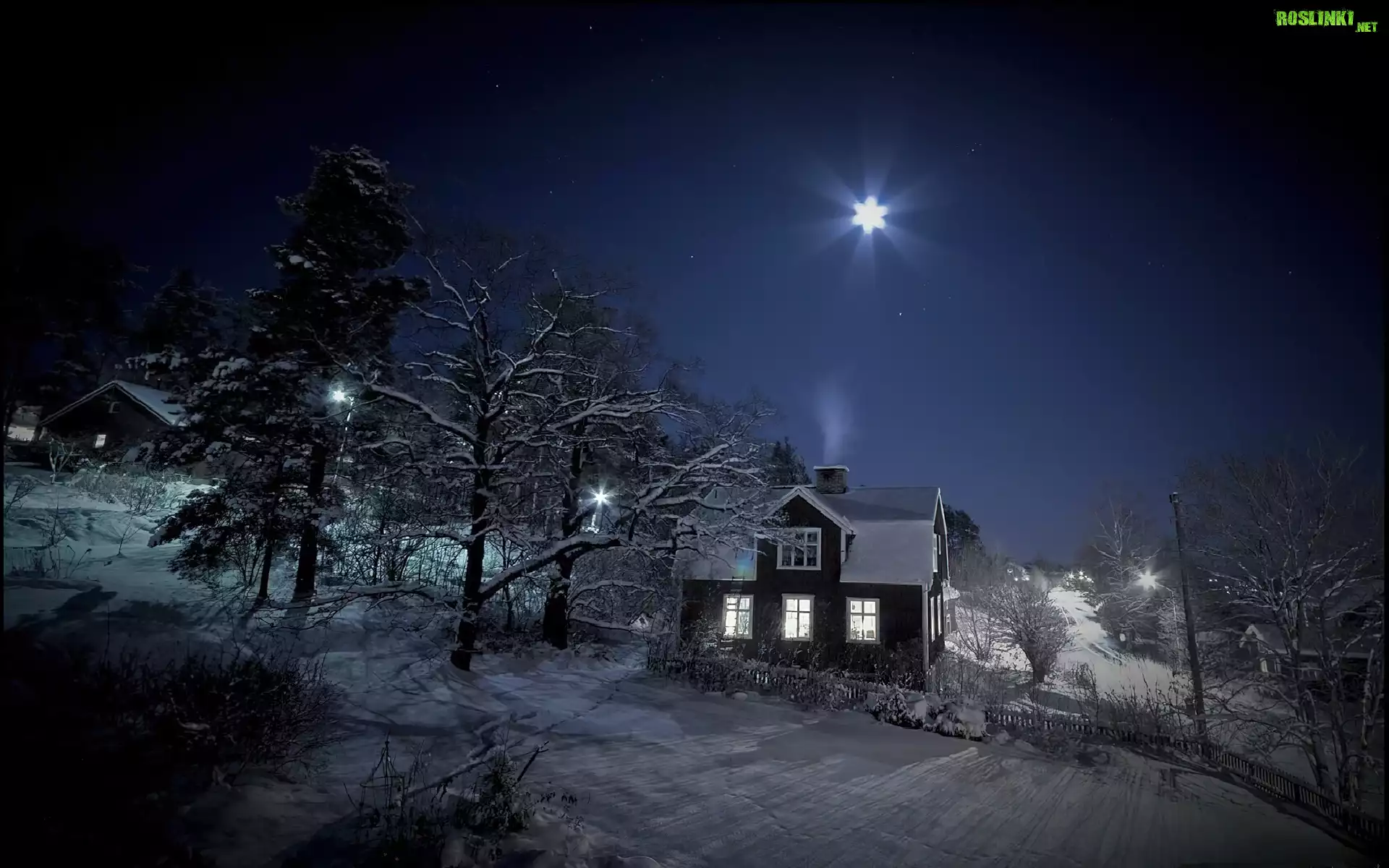 Rośliny: Domek, Drzewa, Śnieg, Gwiazda