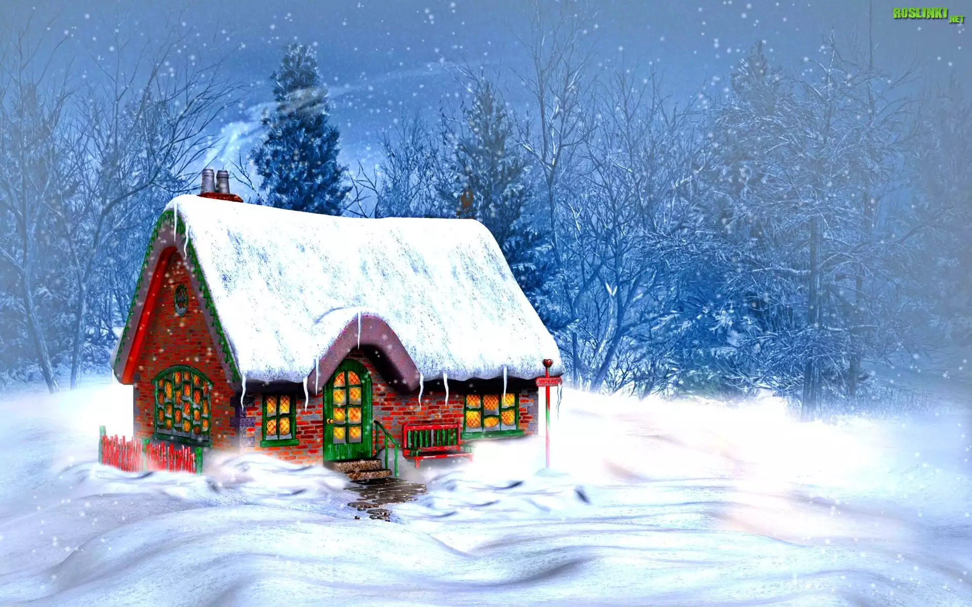 Rośliny: Domek, Zimowa, Zamieć, Śnieg