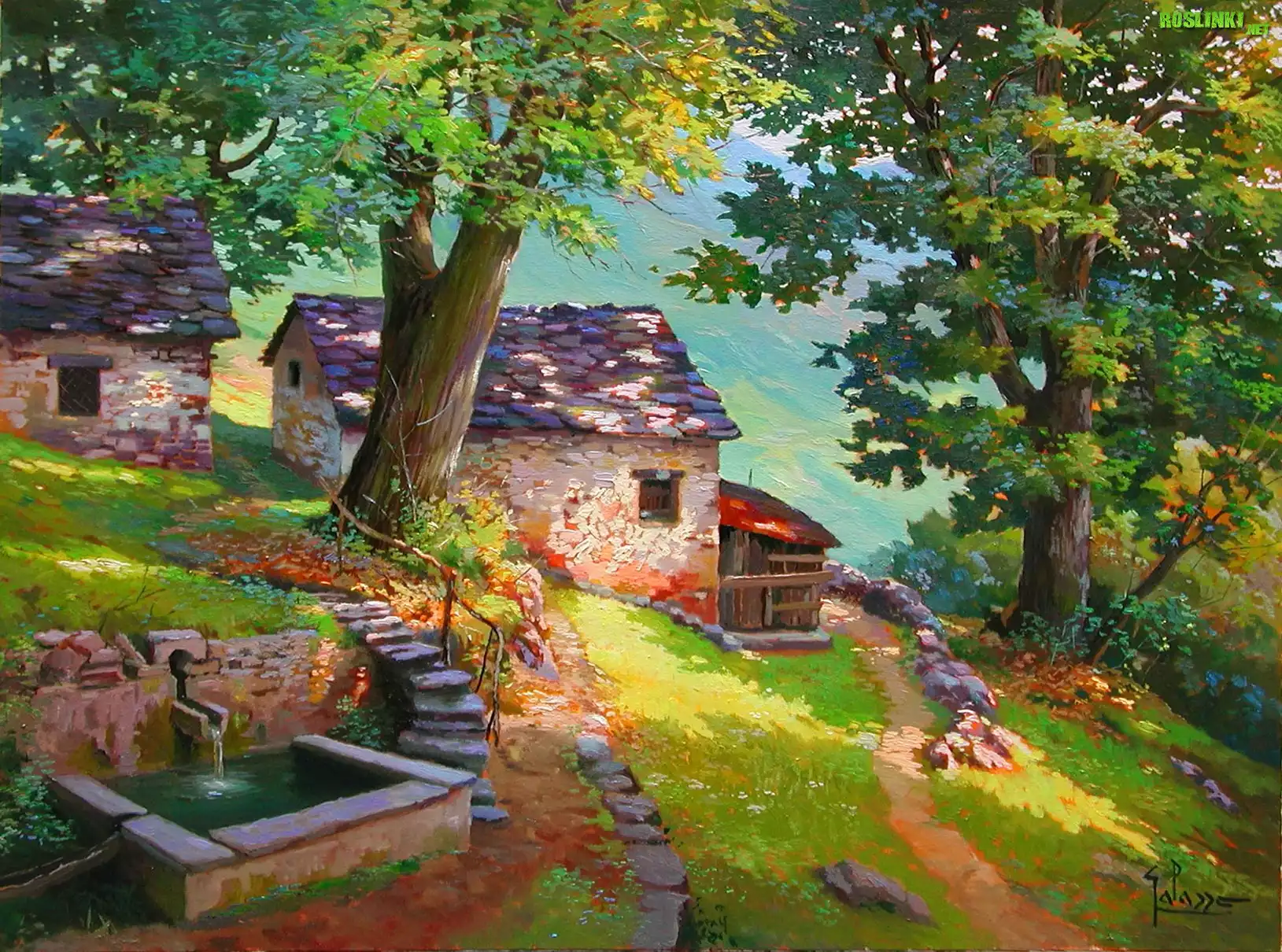 Domy, Dróżka, Górka, Studzienka, Drzewa