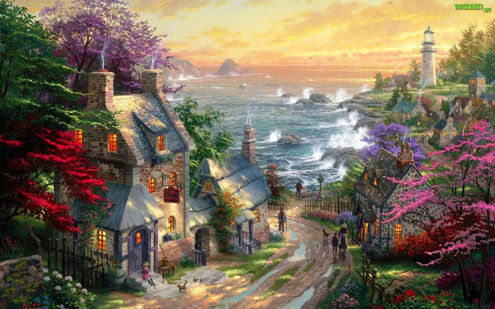Rośliny: Domy, Wybrzeże, Latarnia Morska, Thomas Kinkade