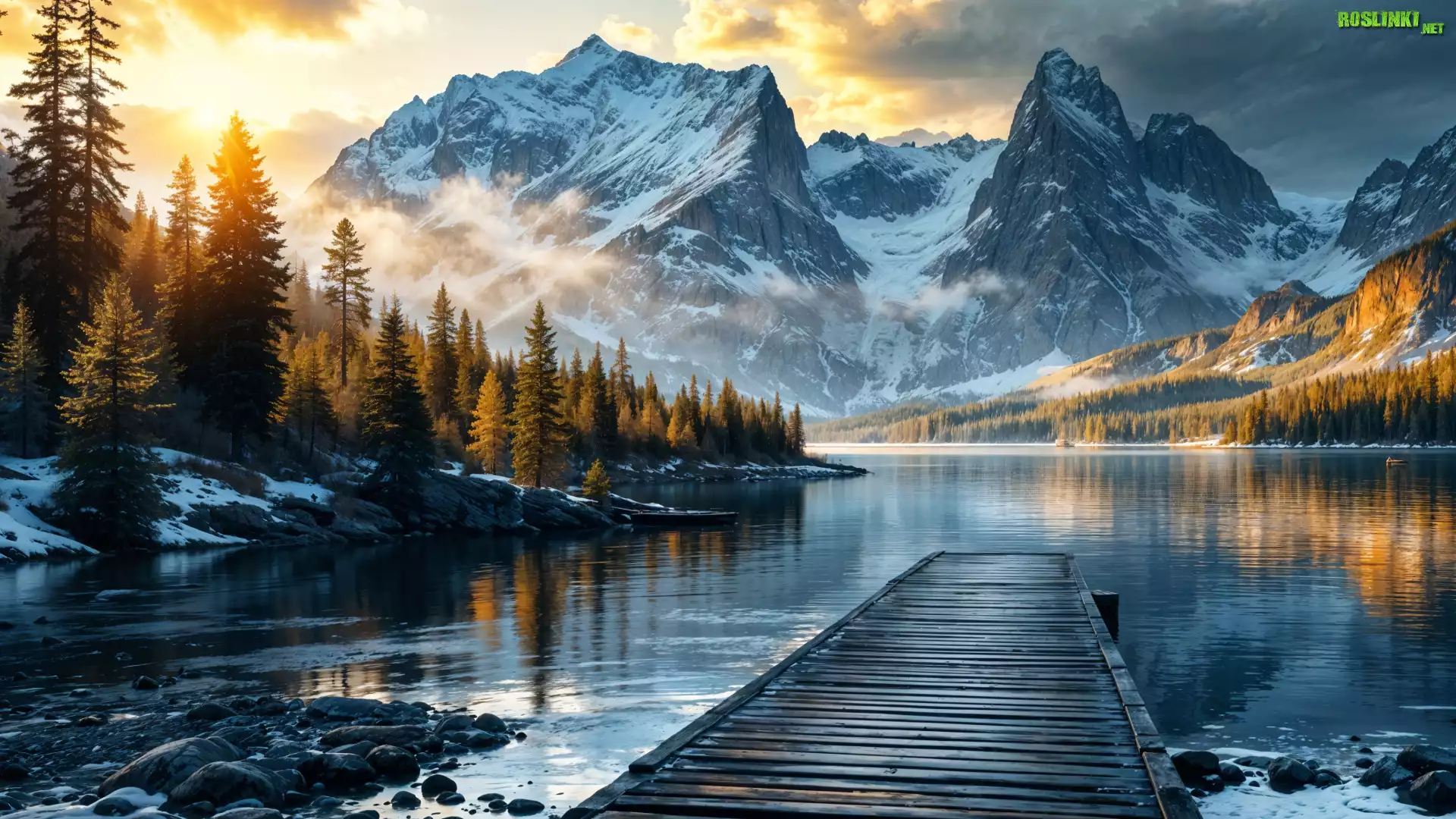 Rośliny: Góry, Drewniany, Pomost, Jezioro, Drzewa