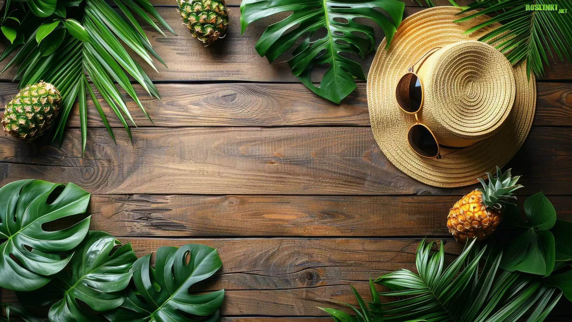 Kapelusz, Ananas, Liście, Drewno, Deski, Kompozycja