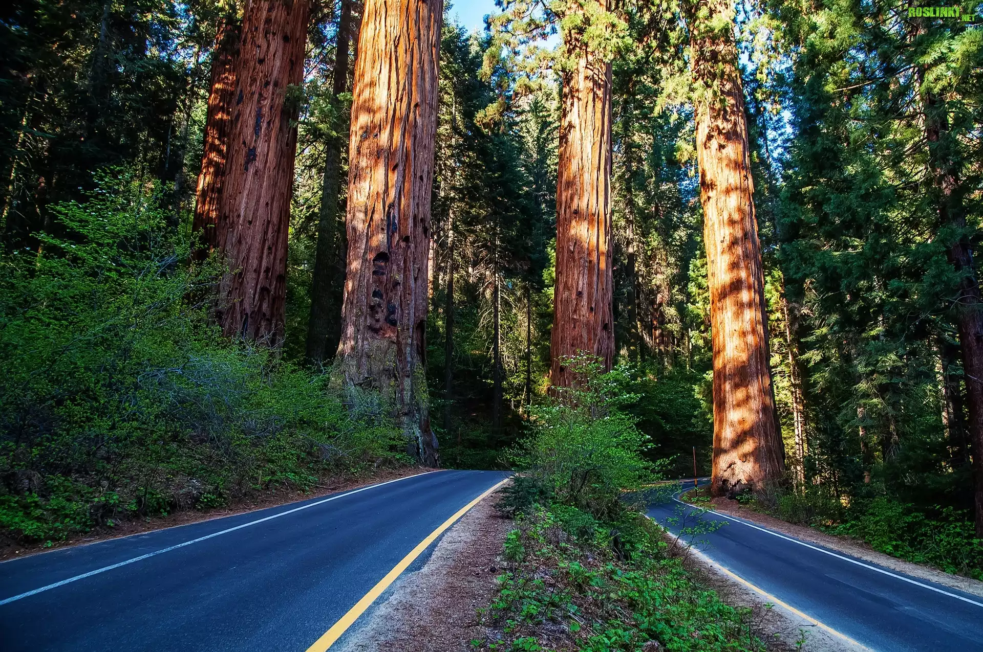 Rośliny: Droga, Przez, Las, Drzewa, Sekwoje