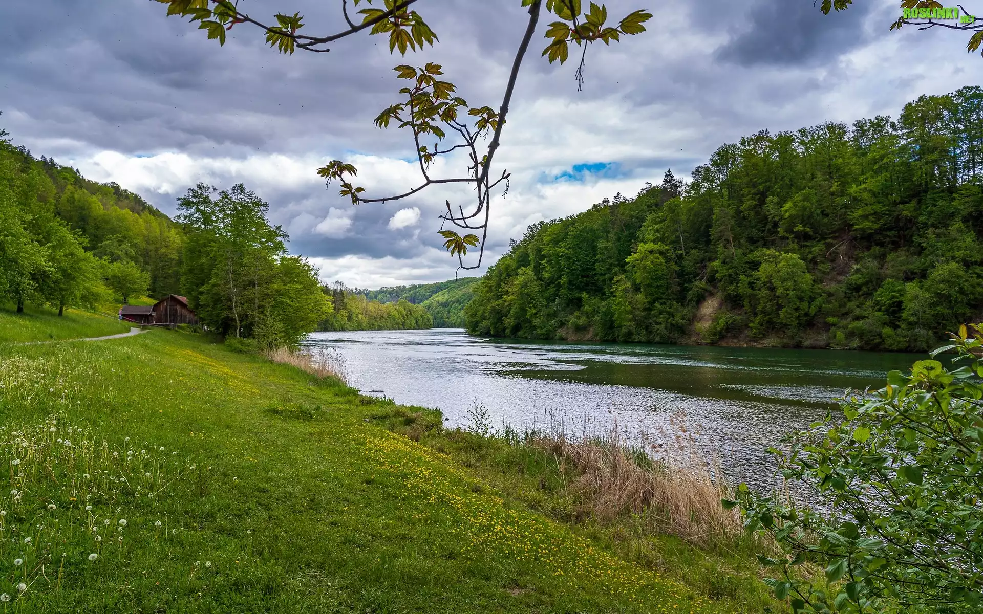 Rośliny: Rzeka Ren, Drzewa, Droga, Szopa, Tossegg, Szwajcaria