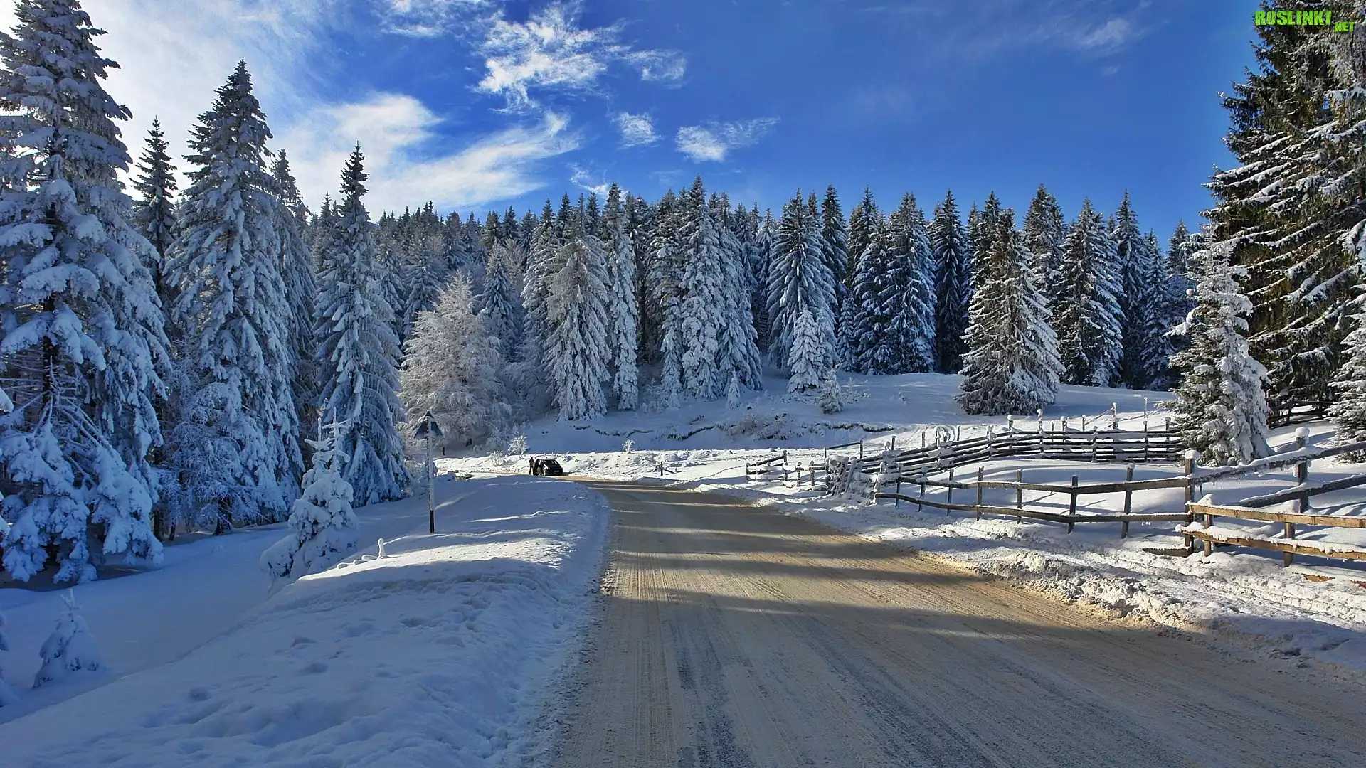Rośliny: Droga, Las, Samochód, Ośnieżone, Drzewa, Zima