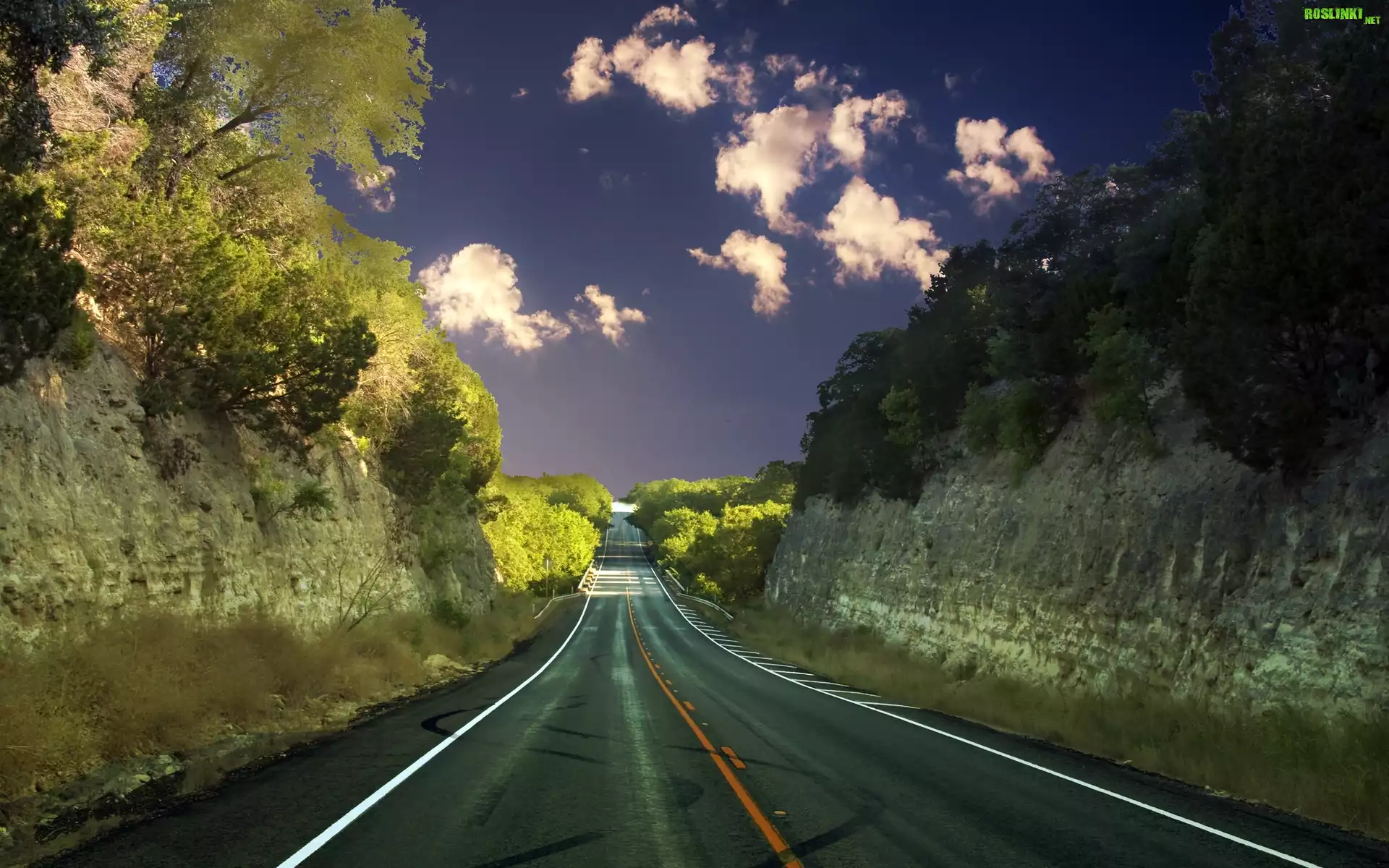 Rośliny: Droga, Skały, Drzewa, Chmury