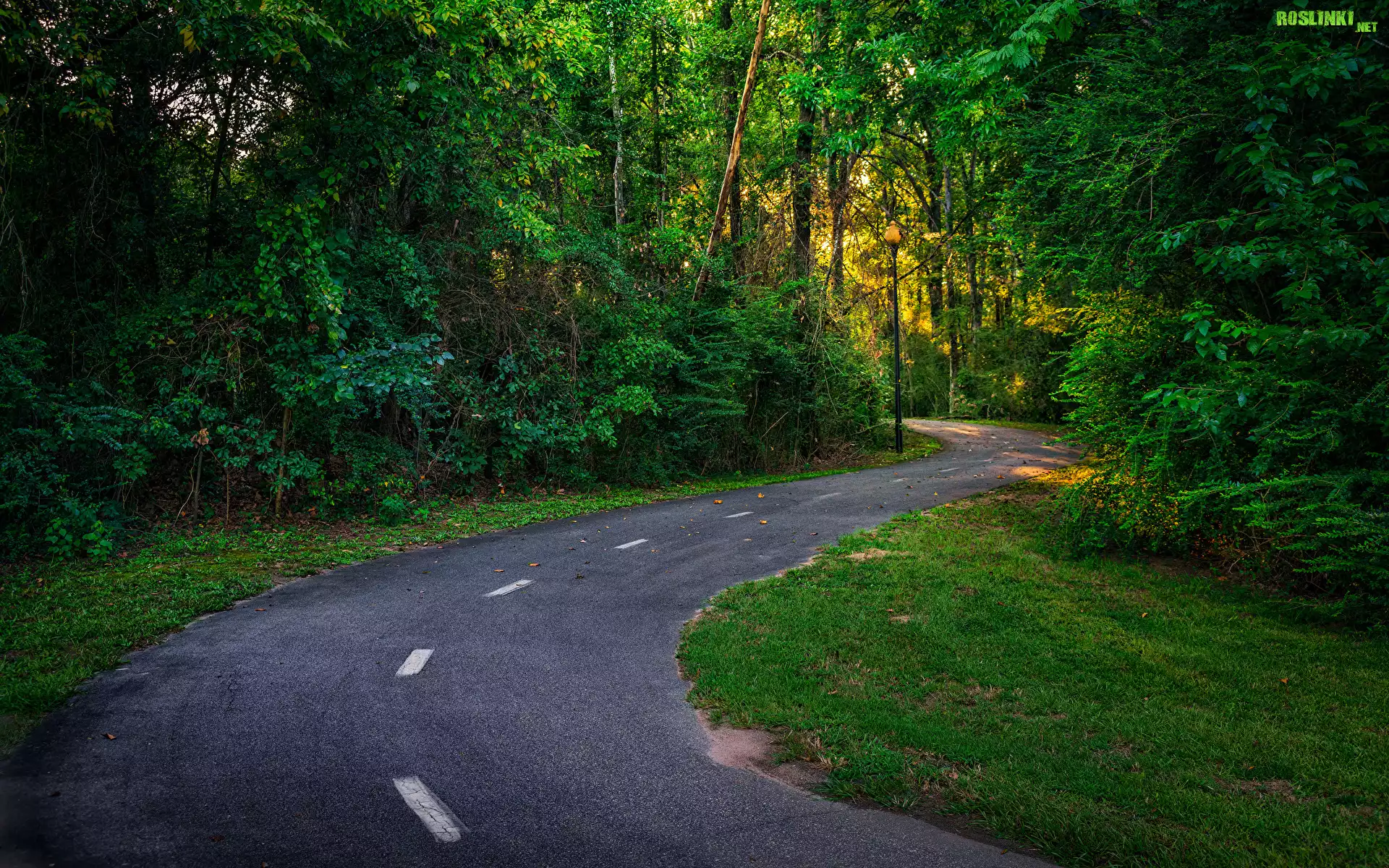 Rośliny: Droga, Zakręt, Zielony, Las, Drzewa, Trawa
