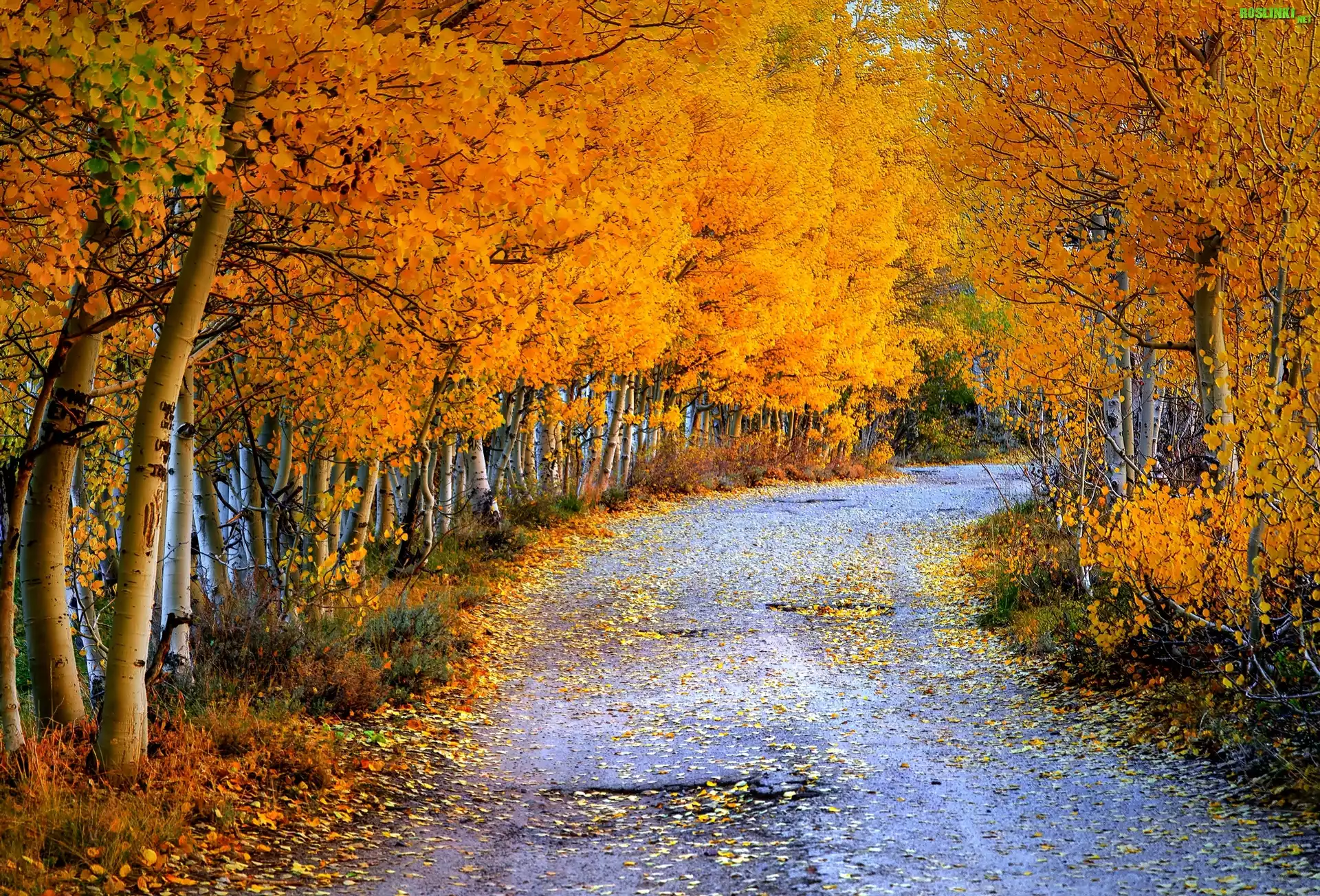 Rośliny: Jesień, Droga, Brzozy